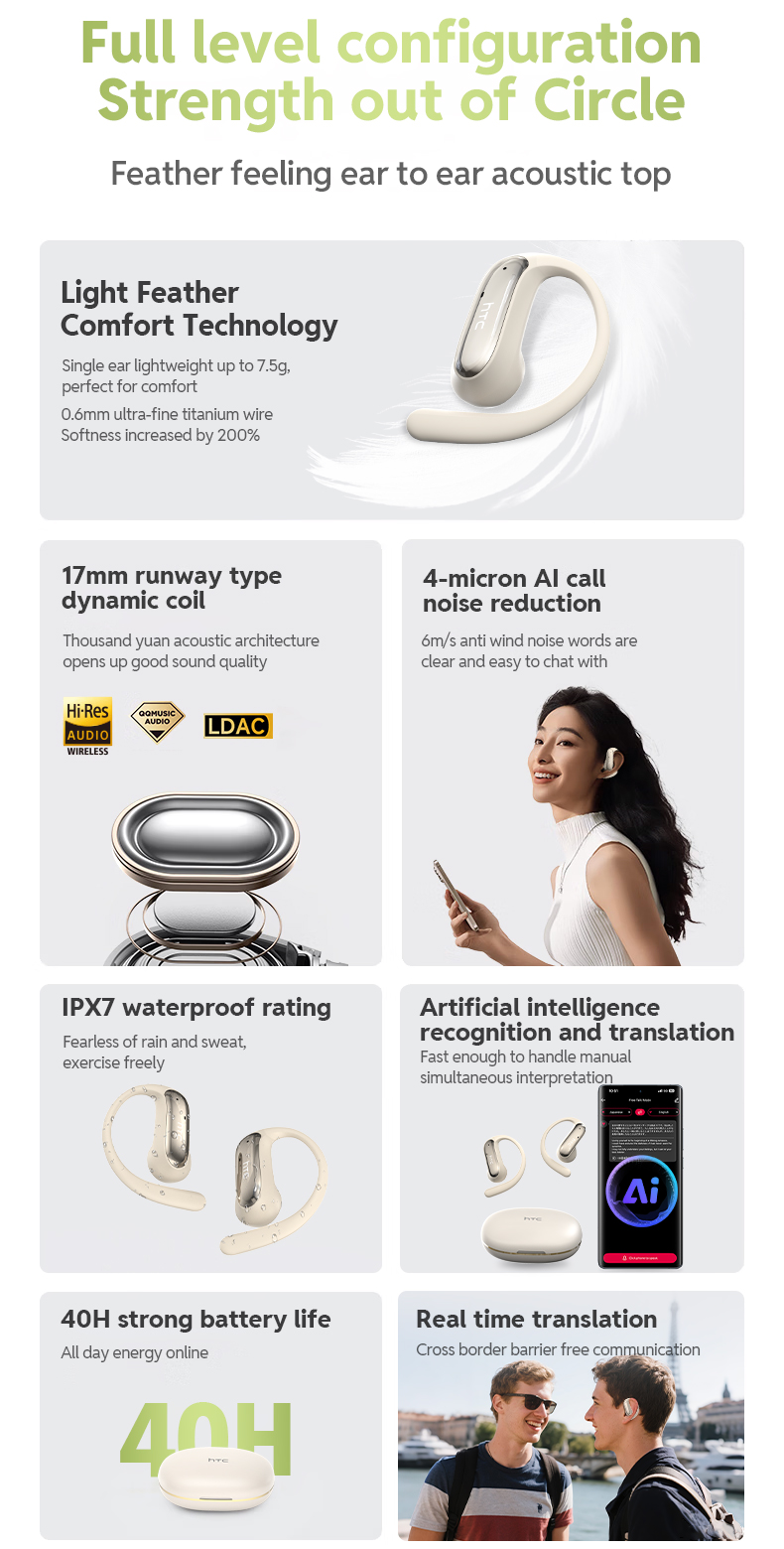 HTC NE52 Tai Nghe Phiên Dịch AI 134 Ngôn Ngữ Kết Nối Bluetooth 6.0 Âm HiFi Chân Thực Thiết Kế Nhét Tai Thoải Mái IPX5 Chống Nước