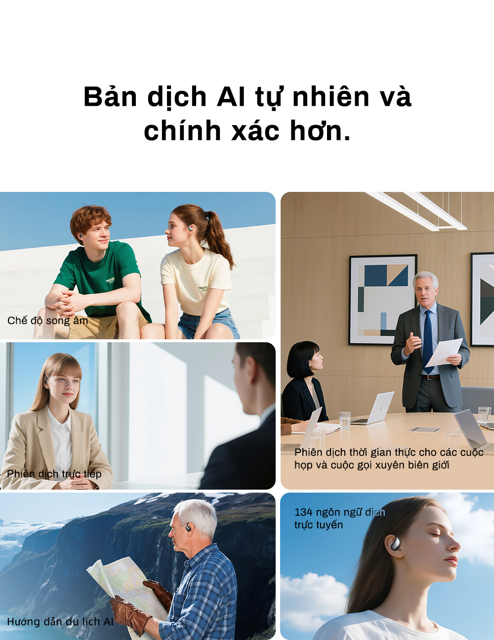 ✅ Dịch đàm thoại thời gian thực Công nghệ dịch đồng thời Binaural; giao tiếp xuyên biên giới giống như giao tiếp bằng ngôn ngữ bản ngữ.