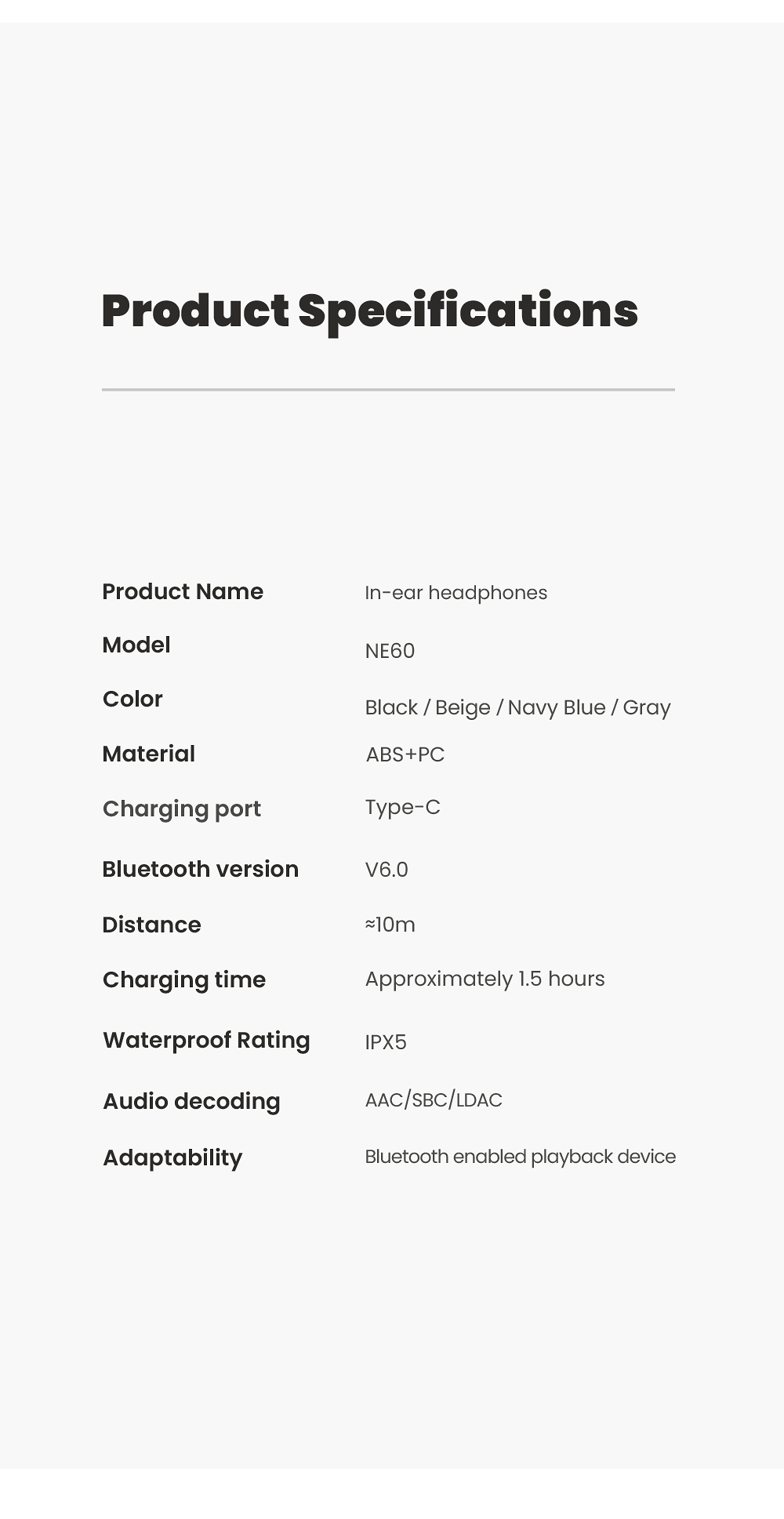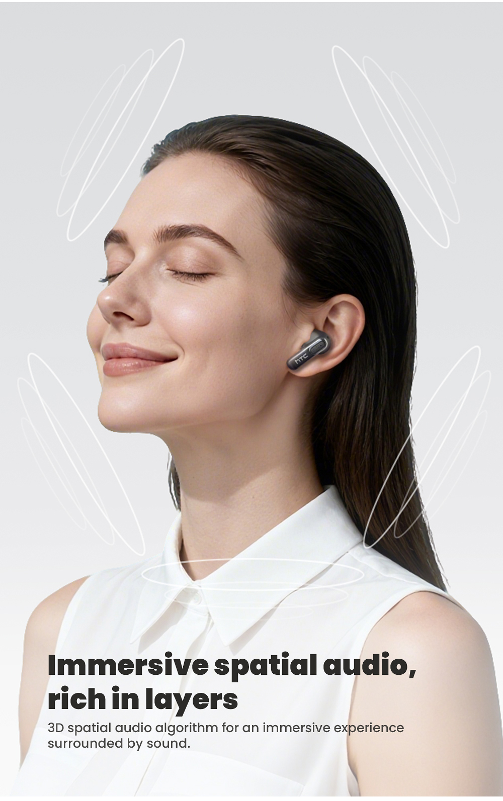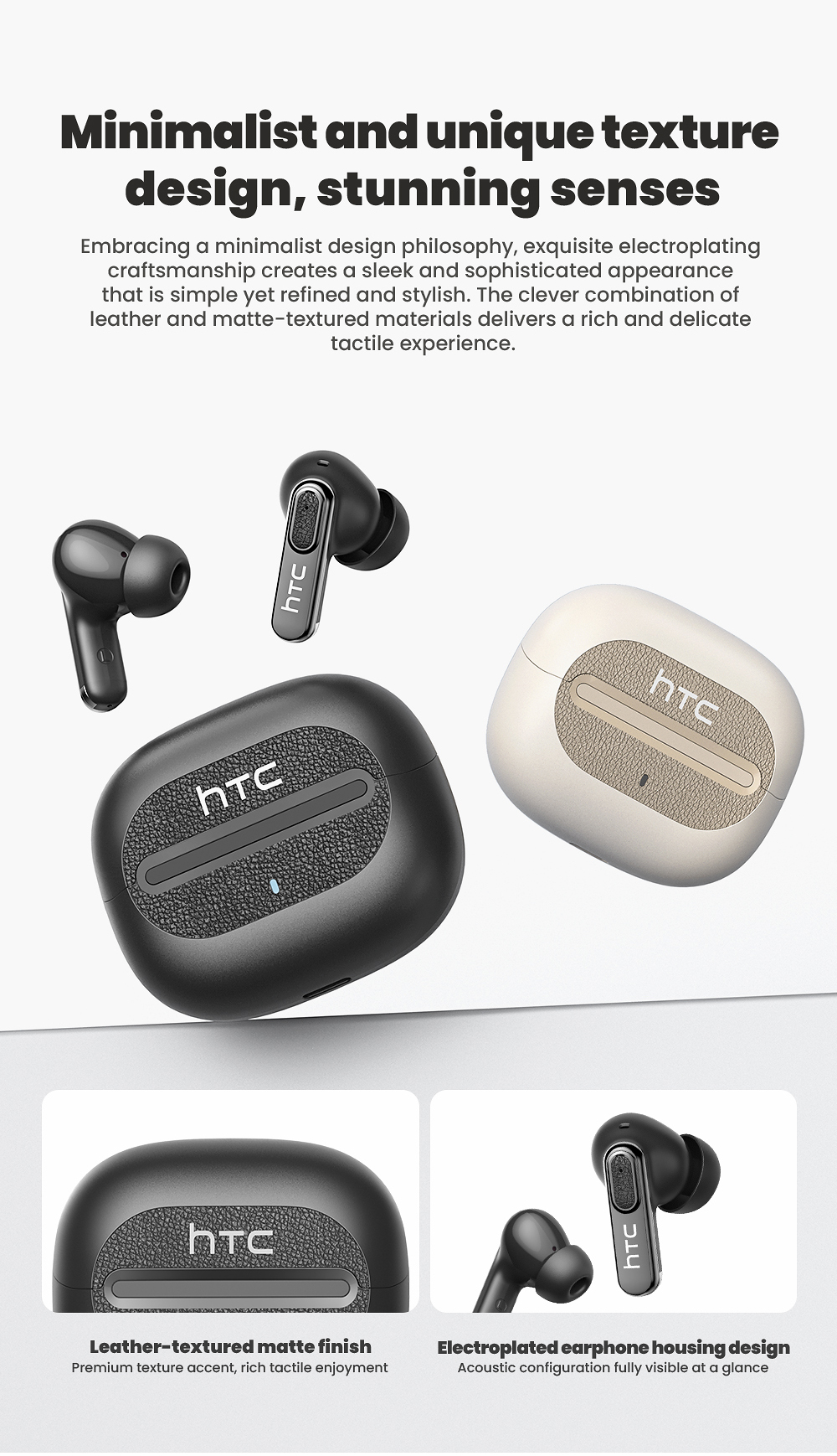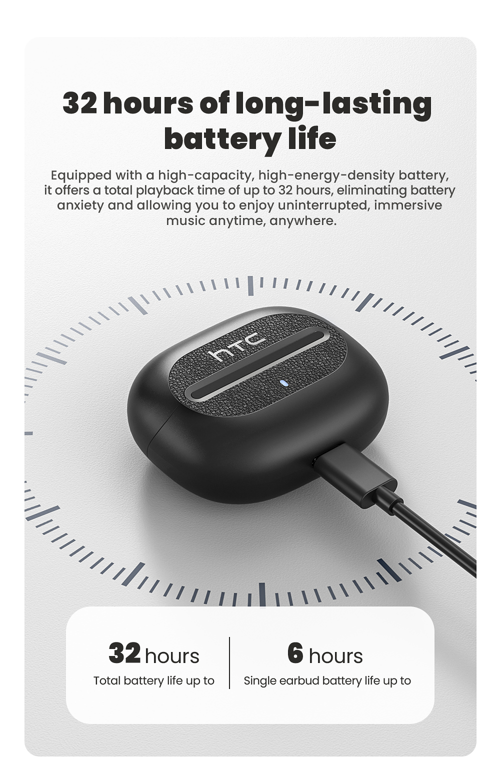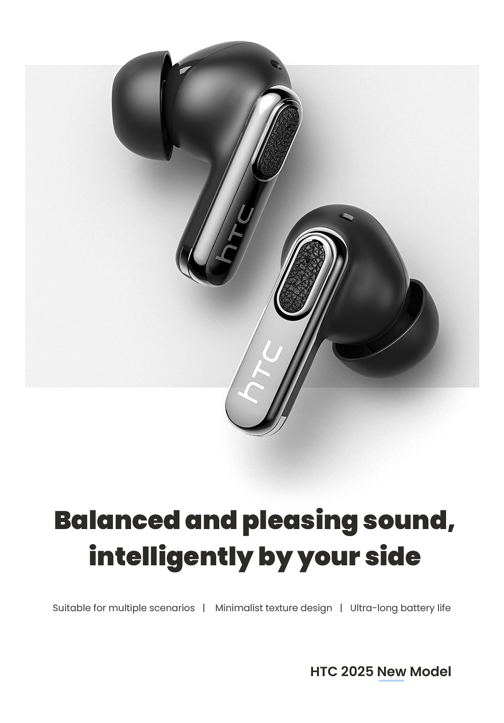 HTC NE60 Tai nghe dịch thuật AI Tai nghe không dây Bluetooth 6.0 Chống ồn chủ động ANC Thời lượng pin 32 giờ Khả năng chống nước IPX5 Tai nghe chơi game