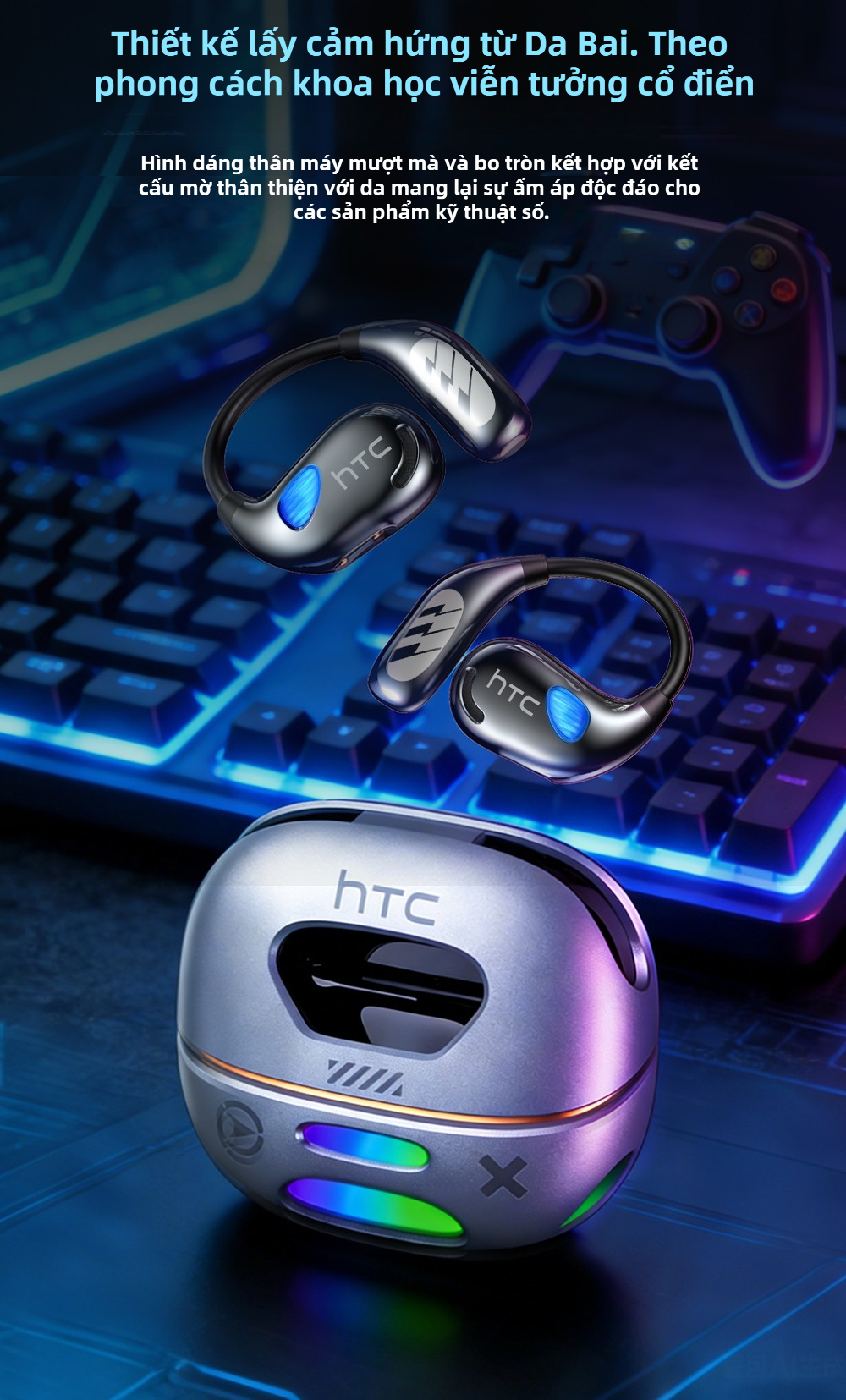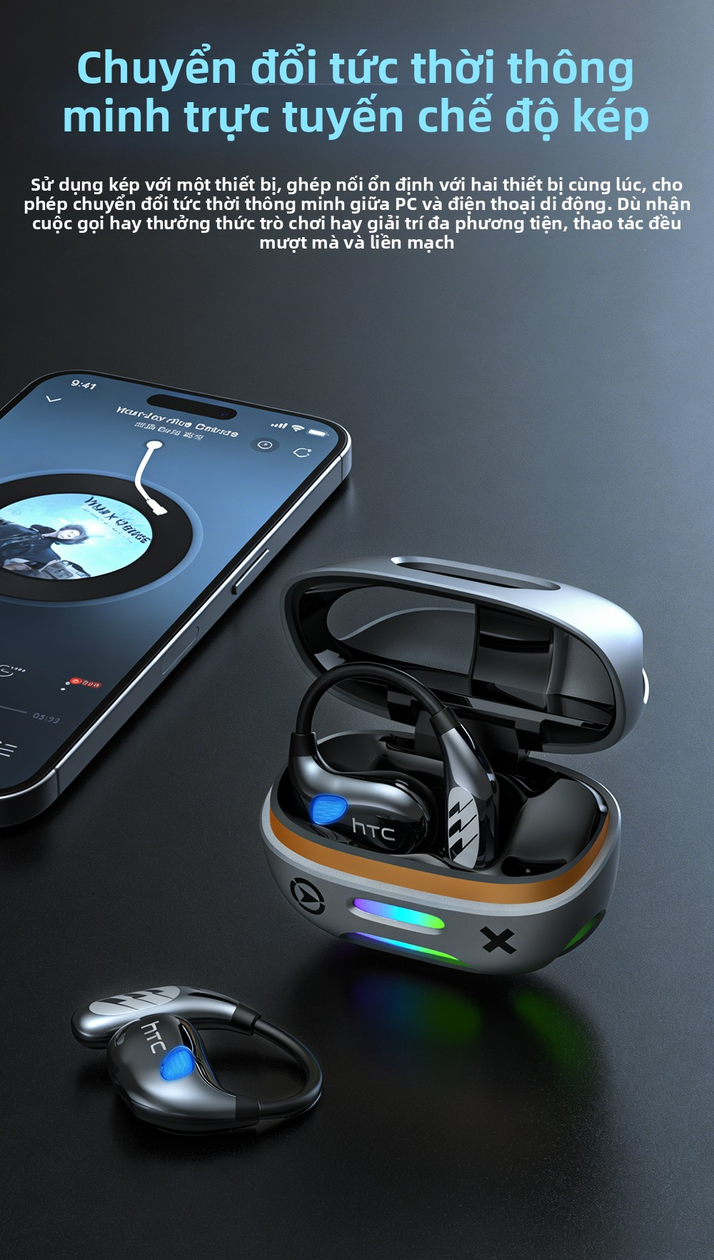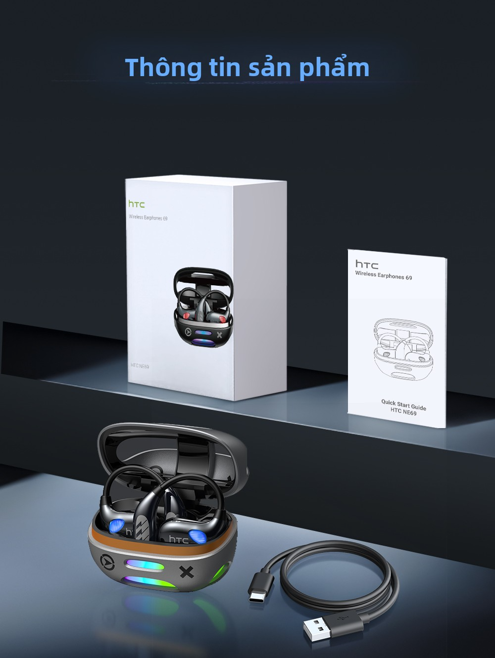 HTC NE69 Tai Nghe Phiên Dịch AI Tai Nghe Ngủ Đa Năng Bluetooth 6.0, Âm Thanh Hi-Fi Cao Cấp Khử Tiếng Ồn ENC Hiệu ứng ánh sáng LED Chống Nước IPX7, Thiết Kế Không Dây