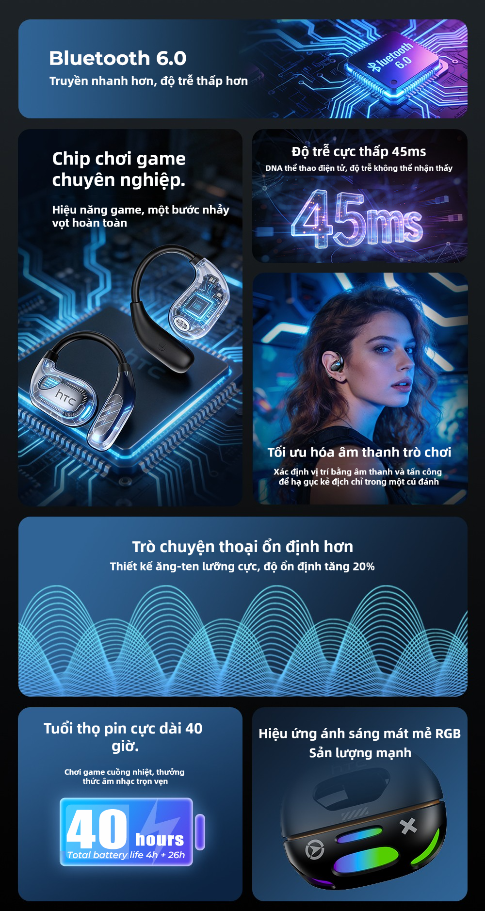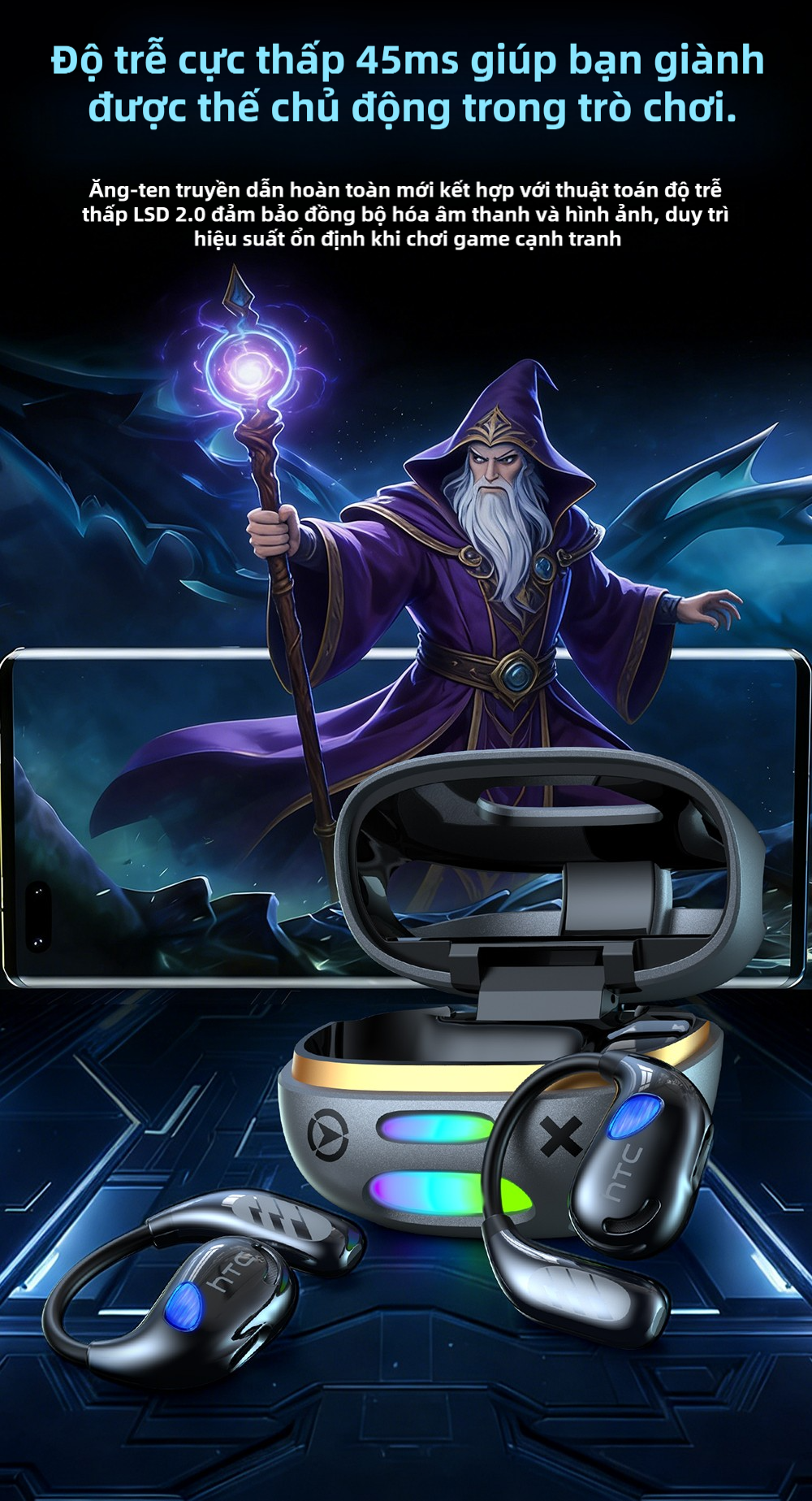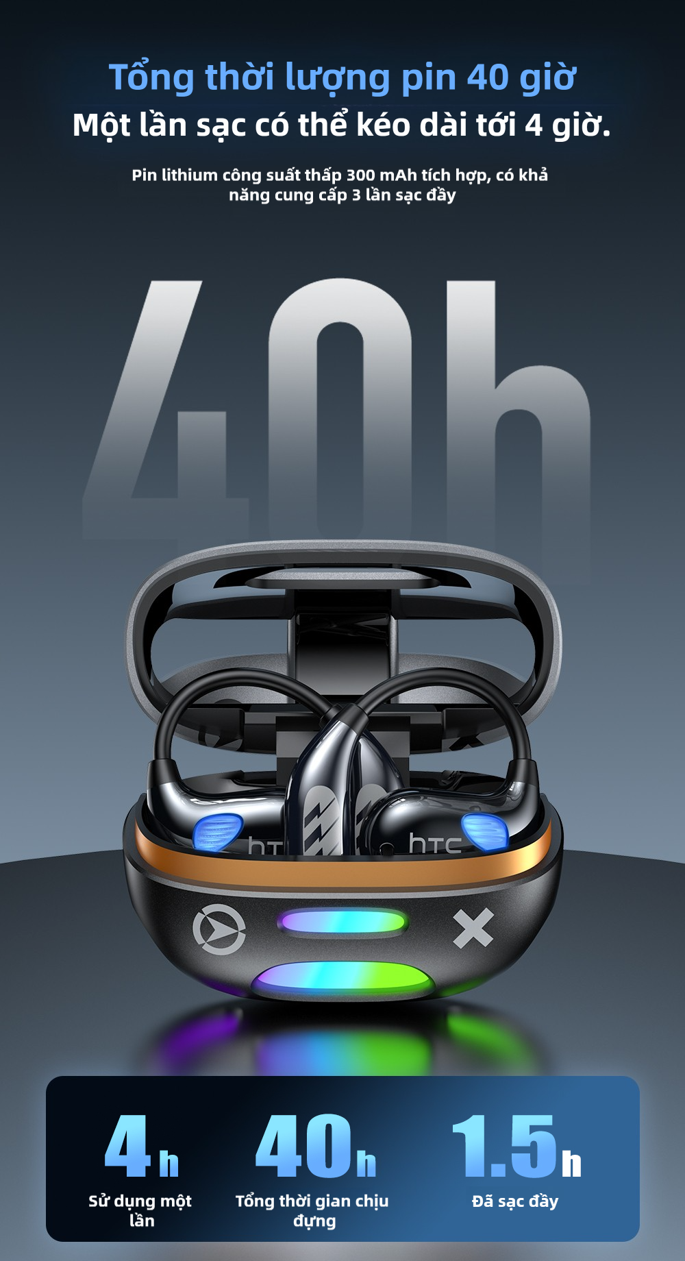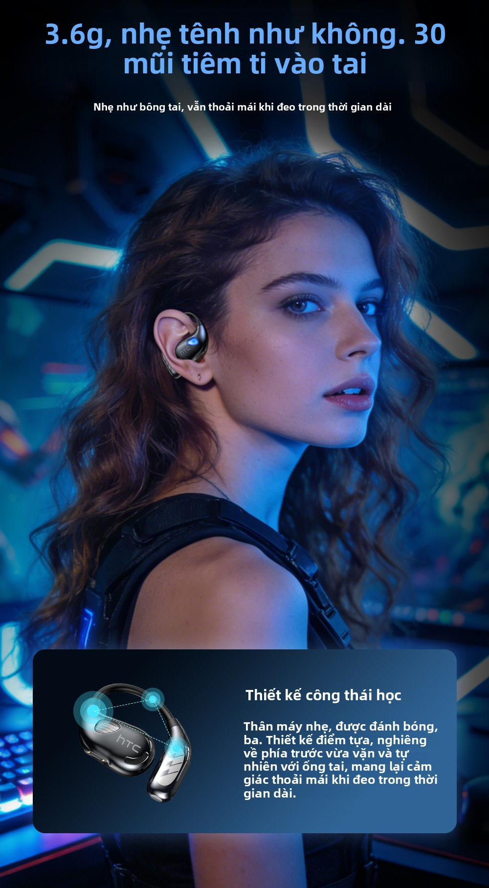 HTC NE69 Tai Nghe Phiên Dịch AI Tai Nghe Ngủ Đa Năng Bluetooth 6.0, Âm Thanh Hi-Fi Cao Cấp Khử Tiếng Ồn ENC Hiệu ứng ánh sáng LED Chống Nước IPX7, Thiết Kế Không Dây