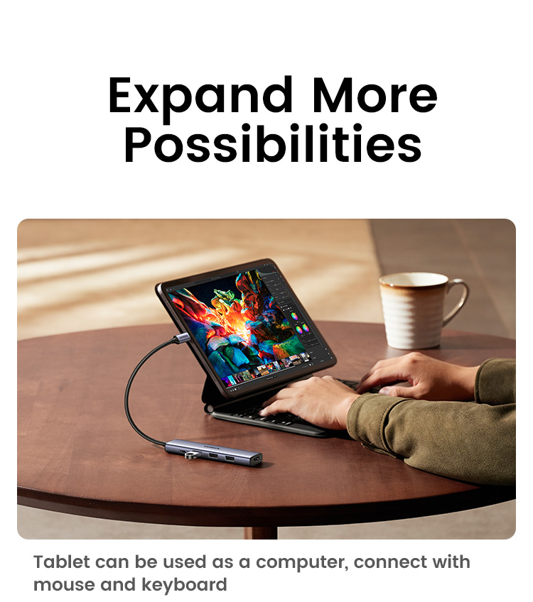 USB C Hub có bên ngoài bằng nhôm kiểu dáng đẹp và cáp bện nylon để bổ sung cho thiết kế của các thiết bị cao cấp.