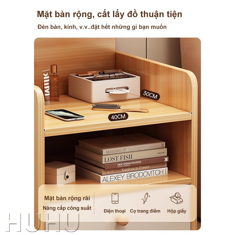 HUHU Tủ đầu giường thông minh, kệ để đồ đa năng, tủ nhỏ phòng ngủ, thiết kế hiện đại, tiện lợi