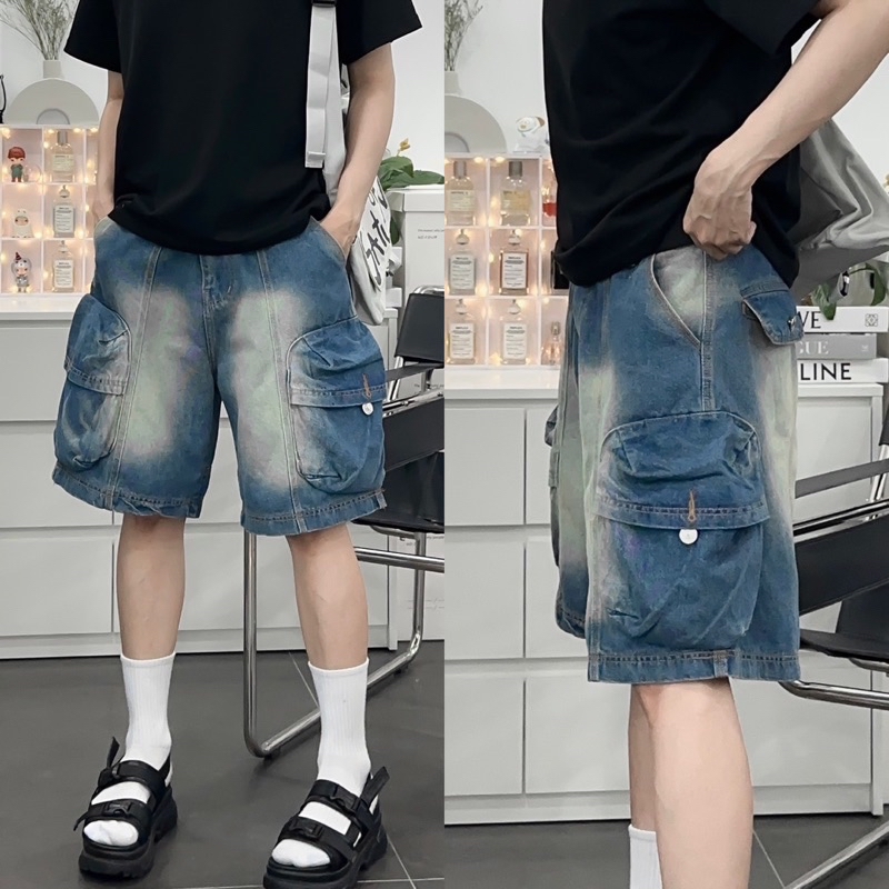 Jaystoree | Quần Shorts Jean túi hộp JUHO WASH màu XANH form Unisex 🖤 Quần ngố denim ống rộng