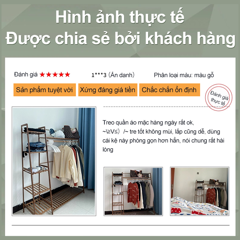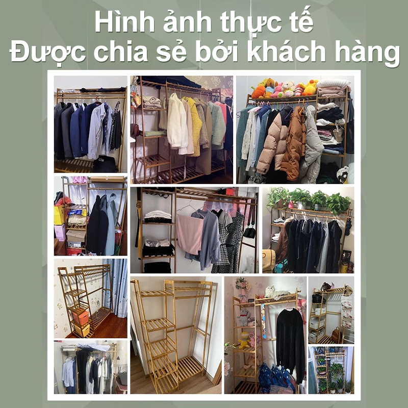 Kệ quần áo kệ treo quần áo và mũ tre đa tầng phân vùng 2 màu gỗ/nâu chọn lựa tiết kiệm không gian