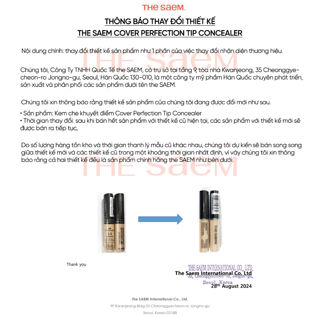 Kem Che Khuyết Điểm THE SAEM Hàn Quốc Cover Perfection Tip Concealer SPF28 PA++ Triệt Sắc Đều Màu Da