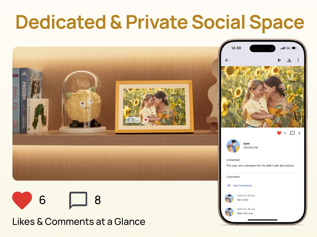 “Chia sẻ tức thì toàn cầu, không khoảng cách cho gia đình ” Chia sẻ ảnh và video mọi lúc, mọi nơi thông qua ứng dụng ARZOPA, hỗ trợ các thành viên gia đình không giới hạn. Đặc biệt cho phép truyền video HD 2 phút không dây để lưu giữ những khoảnh khắc quý giá trọn vẹn mà không làm giảm chất lượng. Với giao diện 32 ngôn ngữ và tối ưu hóa máy chủ toàn cầu, các gia đình quốc tế có thể chia sẻ ký ức một cách dễ dàng xuyên biên giới. (Hoàn hảo cho Ngày của Mẹ, Ngày lễ tình nhân, quà tặng Giáng sinh)