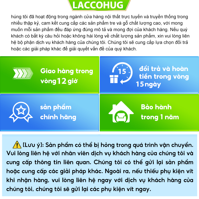 - Bảo hành chất lượng sản phẩm 12 tháng.
