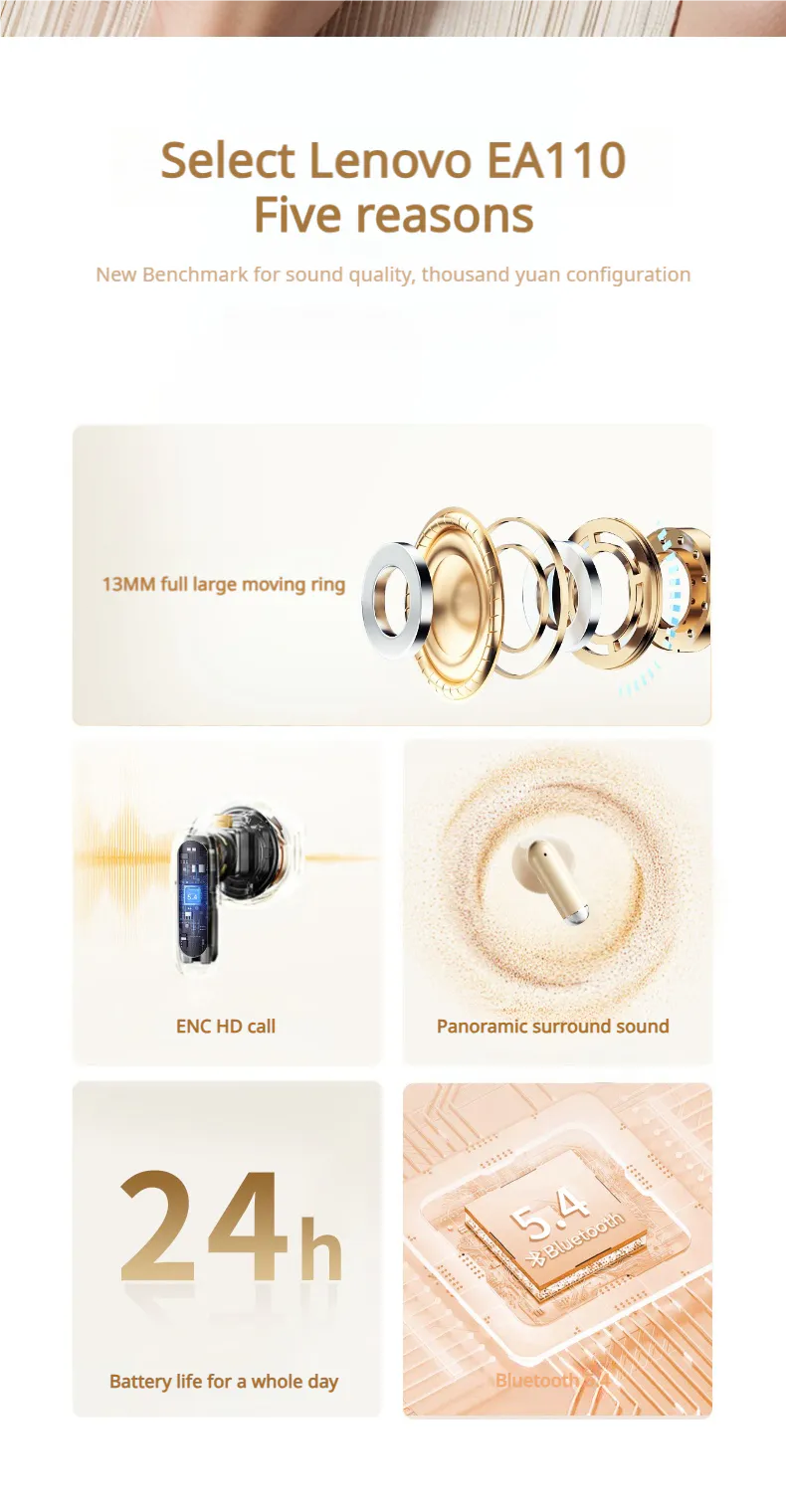 Lenovo EA110 Tai nghe Bluetooth 5.4 Độ trễ thấp Bản dịch hai chiều Biên bản cuộc họp