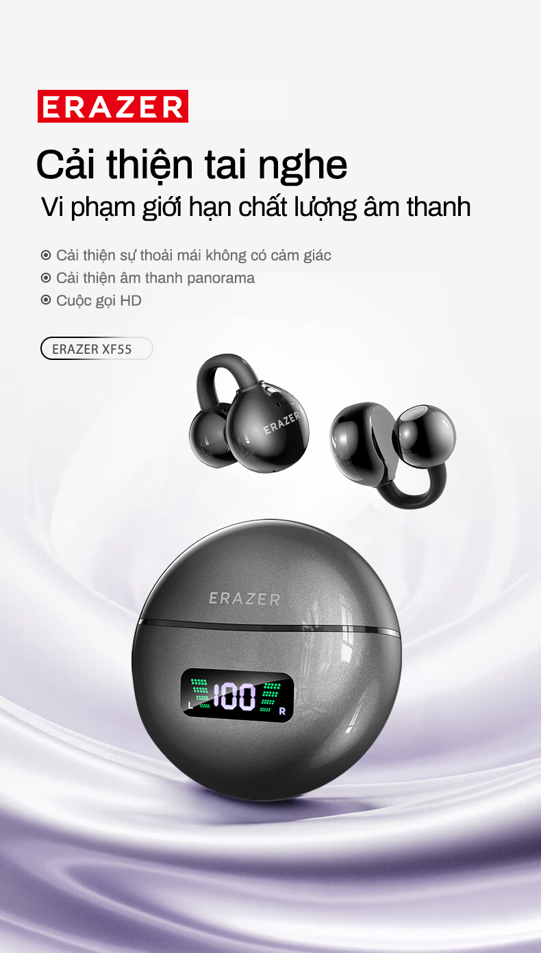 Lenovo ERAZER XF55 AI Dịch thuật thời gian thực Tai nghe Bluetooth Loại kẹp tai Tai nghe Bluetooth 6.0 Chất lượng âm thanh HiFi IPX5 Tai nghe không dây chống nước Bảo hành một năm