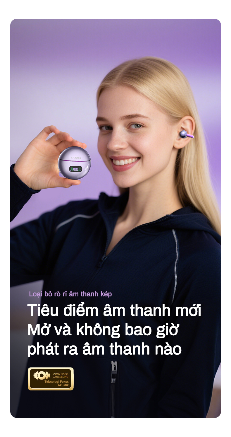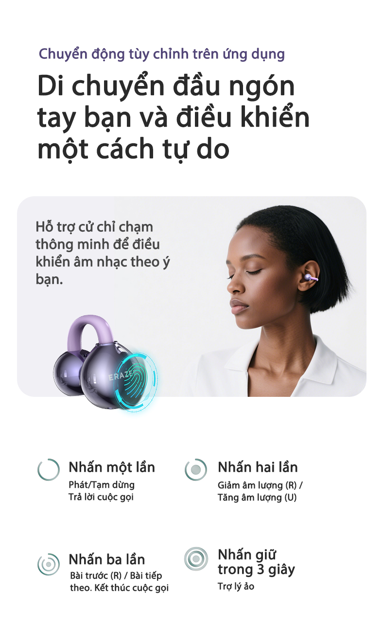Chế độ âm nhạc: Nhấn và giữ tai nghe bên phải một lần nữa trong 2 giây, bạn sẽ nghe thấy hai âm thanh nhắc nhở.