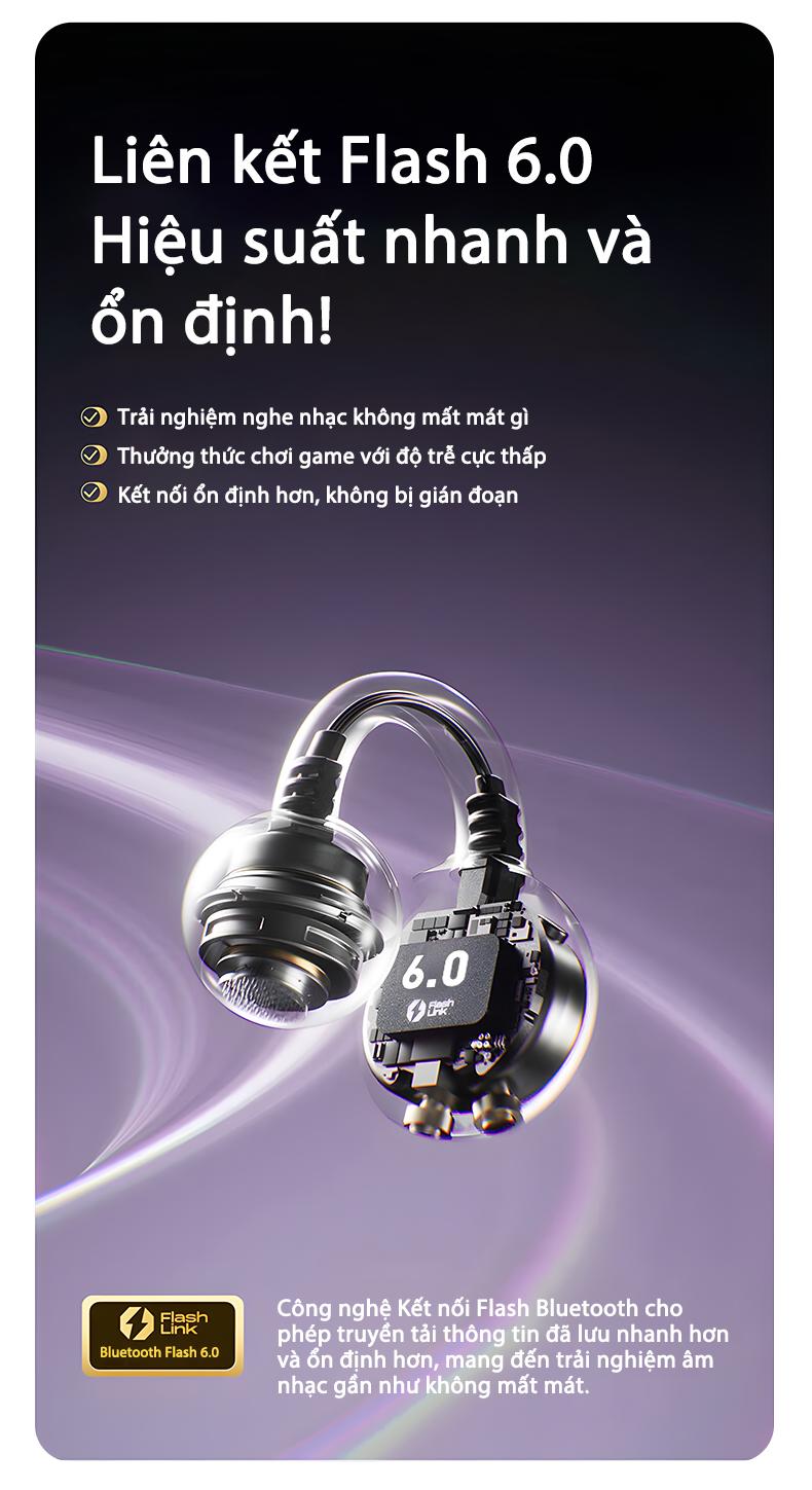 Công nghệ Bluetooth 6.0 mới: Tốc độ cao và ổn định Khoảng cách truyền độ trễ cực thấp: Khoảng 10 mét (Không có chướng ngại vật)