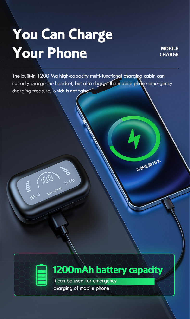 Dung lượng pin (mAh): tai nghe đơn * Pin sạc dự phòng 30mAh * 1200mAh