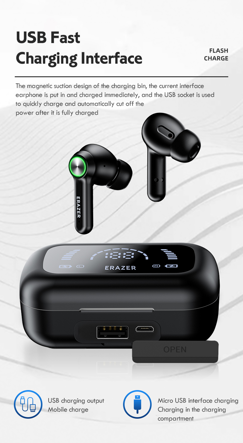 Ngăn sạc tích hợp màn hình hiển thị chính xác để đọc nguồn điện của tai nghe MCU và ngăn sạc. Kiểm soát nguồn điện bất cứ lúc nào và đảm bảo sạc đầy.