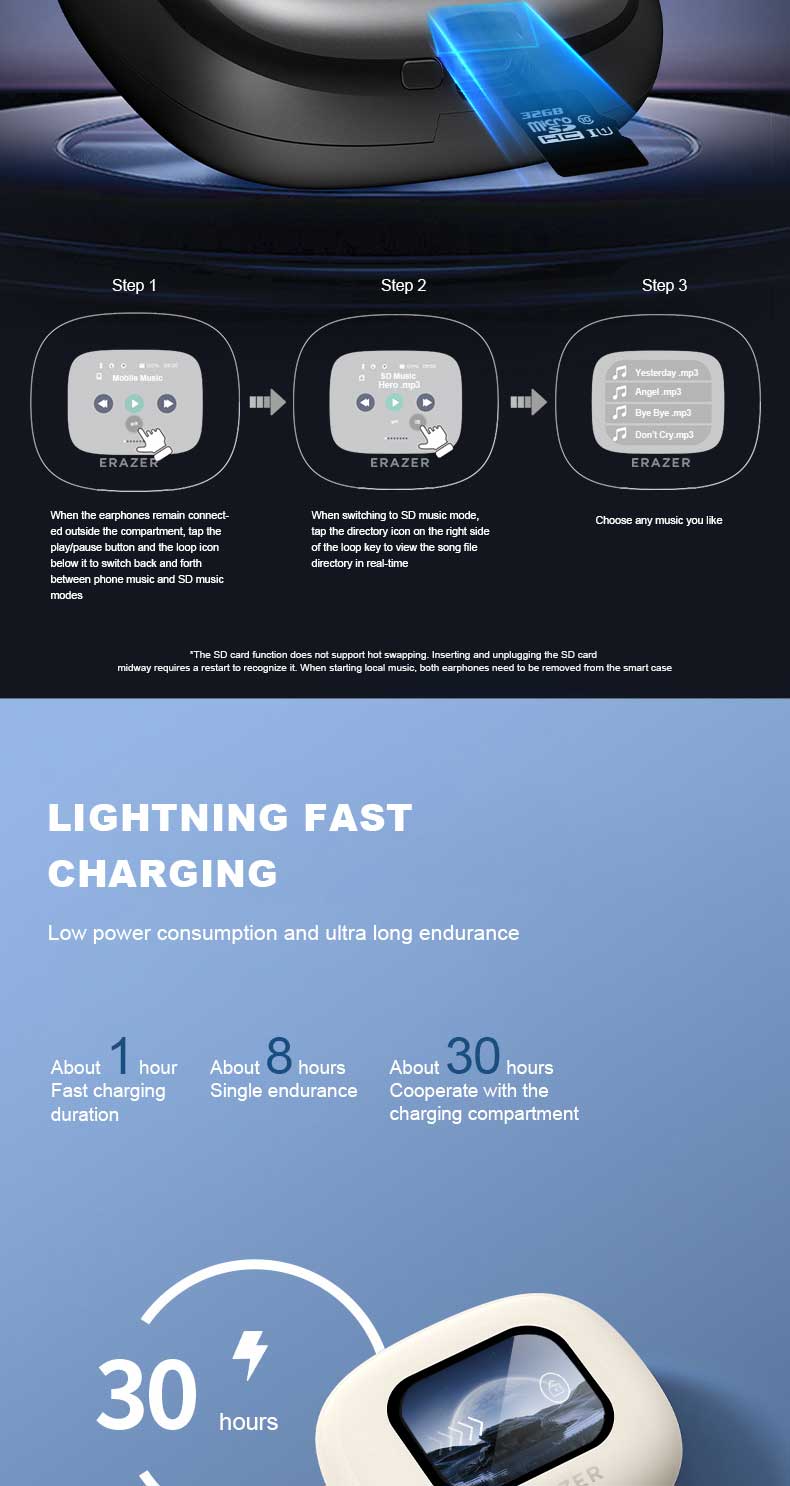 Mức độ chống thấm nước: IPX5 cho tai nghe, ngăn sạc không chống thấm nước