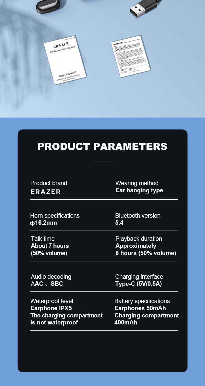 Thông số kỹ thuật pin: tai nghe 50mAh, hộp sạc 400mAh