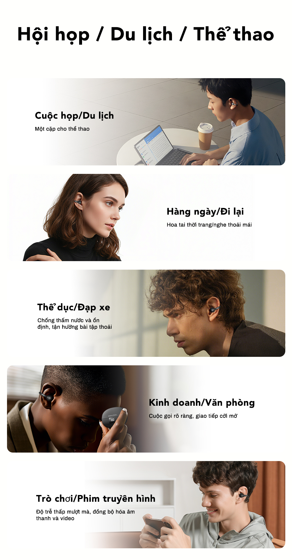Nó vừa vặn với ống tai hơn và không bị xê dịch khi vận động, tạo cảm giác thoải mái khi đeo cả ngày.