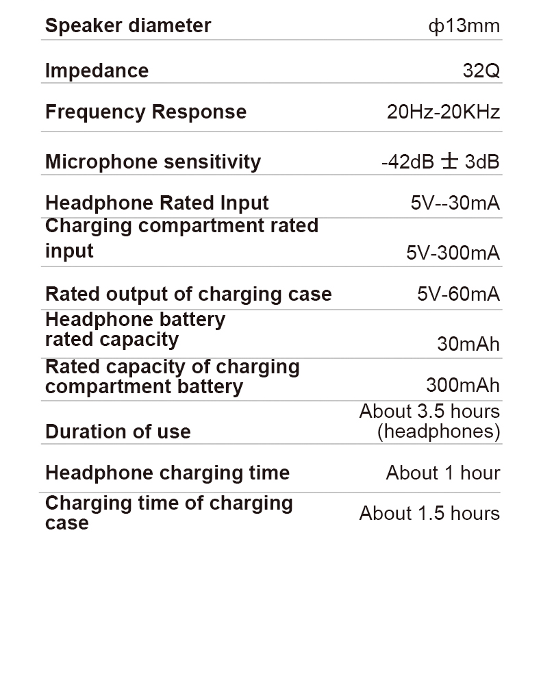 Dung lượng pin (mAh): tai nghe đơn * Pin sạc dự phòng 30mAh * 300mAh