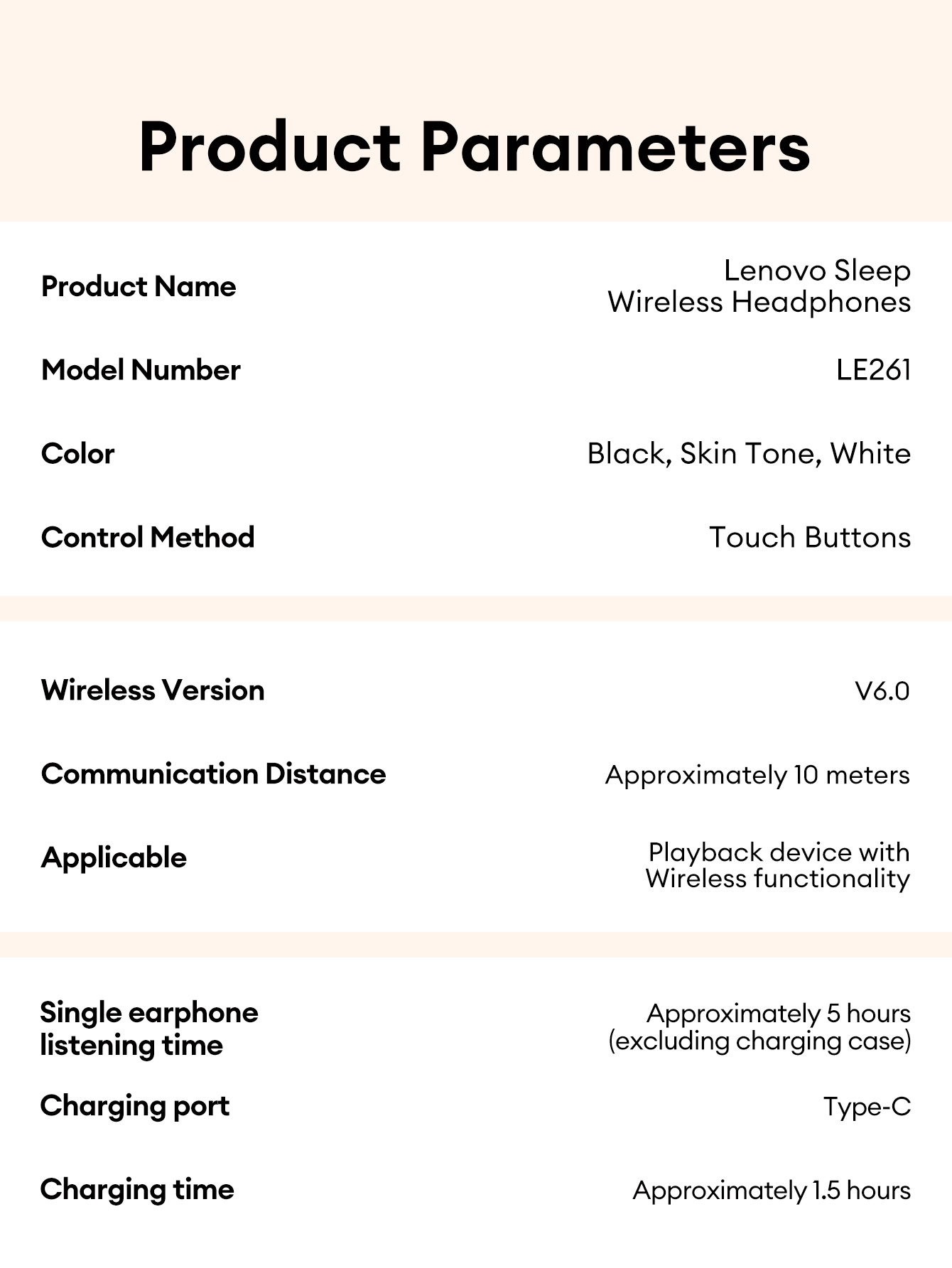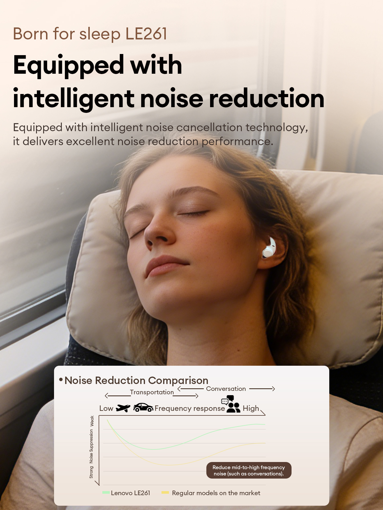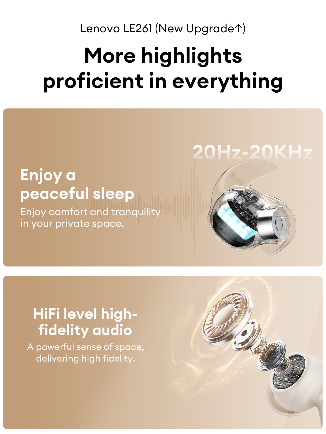 Lenovo LE261 Sleep Bluetooth Tai nghe HiFi Level Lossless Chất lượng âm thanh Vô hình Kháng khuẩn Thoải mái Tai nghe Bluetooth 6.0