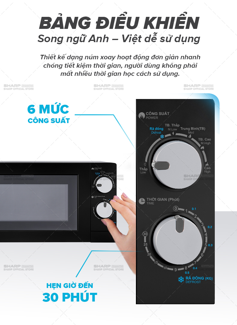 Lò Vi Sóng Sharp 20 Lít R-208VN-WS, [700W, 6 Mức Công Suất, Bảng Điều Khiển Anh – Việt Dễ Sử Dụng] - Bảo Hành 12 Tháng