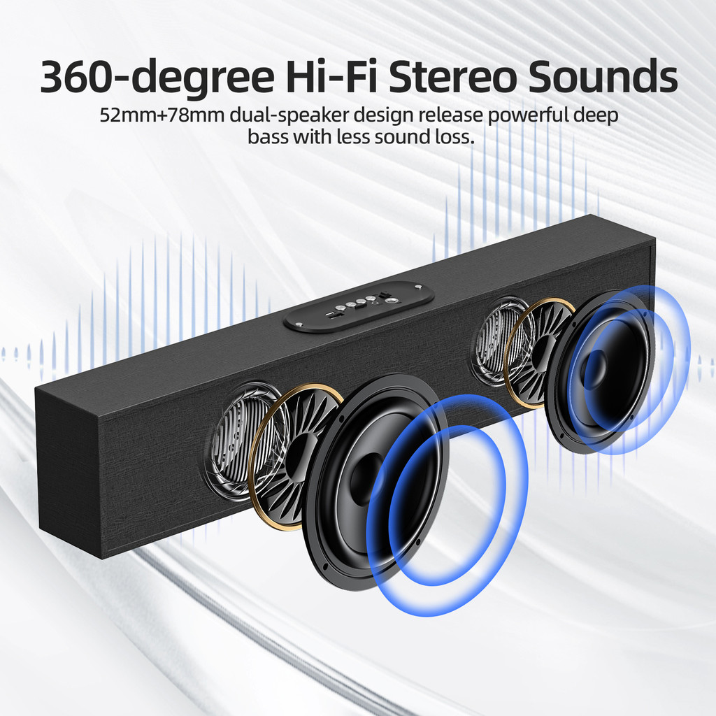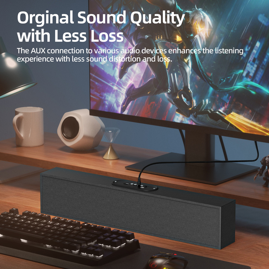 Thiết kế kích thước nhỏ gọn cho máy tính để bàn: So với loa gia đình truyền thống, loa máy tính mini của chúng tôi dành cho máy tính để bàn, với kích thước 55 x11 x 8cm và trọng lượng 1600g, có thể tiết kiệm không gian trên máy tính để bàn hoặc góc phòng Và thuận tiện để mang theo ngoài trời để cung cấp các bữa tiệc hoặc bài phát biểu gây sốc.