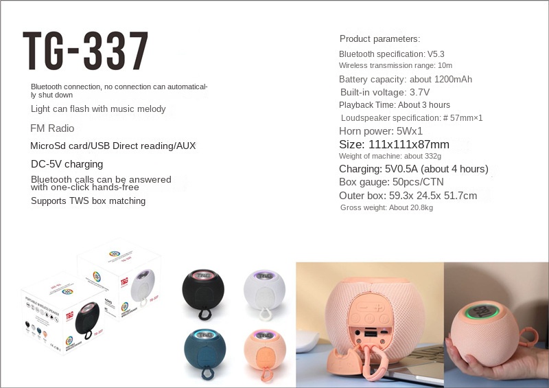 Loa Bluetooth Không Dây TG337 Âm Siêu Trầm Chất Lượng Cao
