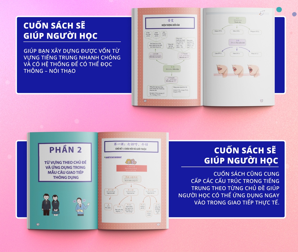 - Cuốn sách cũng cung cấp các cấu trúc trong tiếng Trung theo từng chủ đề giúp người học có thể ứng dụng ngay vào trong giao tiếp thực tế.