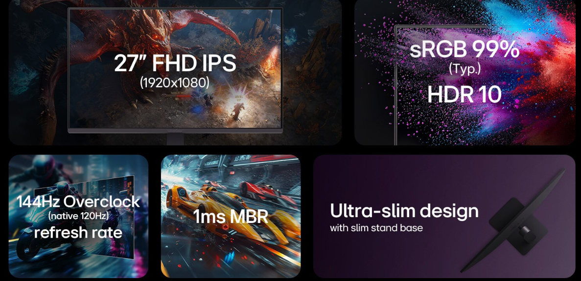 Màn hình LG IPS Full HD 144Hz với thiết kế 4 cạnh siêu mỏng, sRGB 99%, HDR 10, 1ms MBR -27G411A-B
