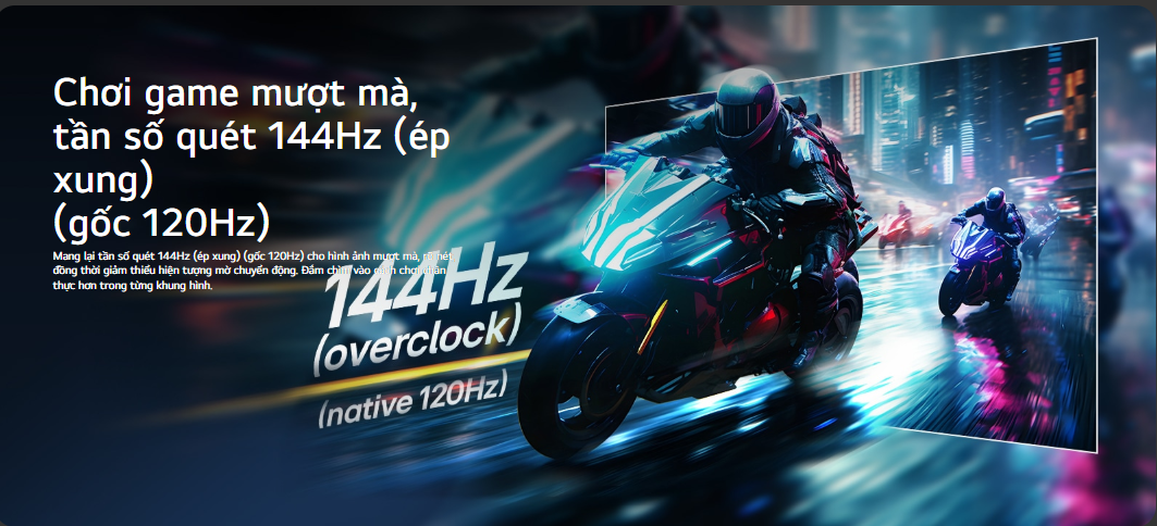 Tần số quét lên đến 144Hz được trang bị nhằm hỗ trợ các trò chơi tốc độ cao hiển thị mượt mà. Màn hình còn sở hữu kích thước điểm ảnh 0.3114 x 0.3114 mm hỗ trợ tăng độ chi tiết khi quan sát gần. Nhờ đó, sản phẩm cho trải nghiệm tốt khi hiển thị văn bản, hình họa hay chuyển cảnh khi giải trí.