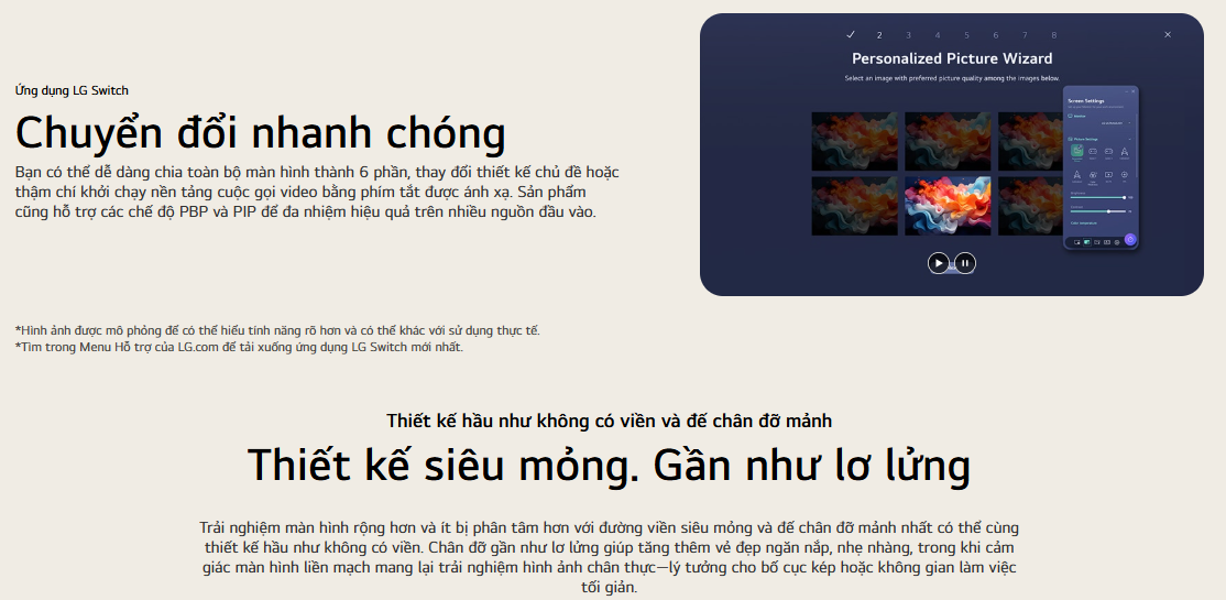 Sản phẩm thiết kế tinh gọn với đường viền mỏng