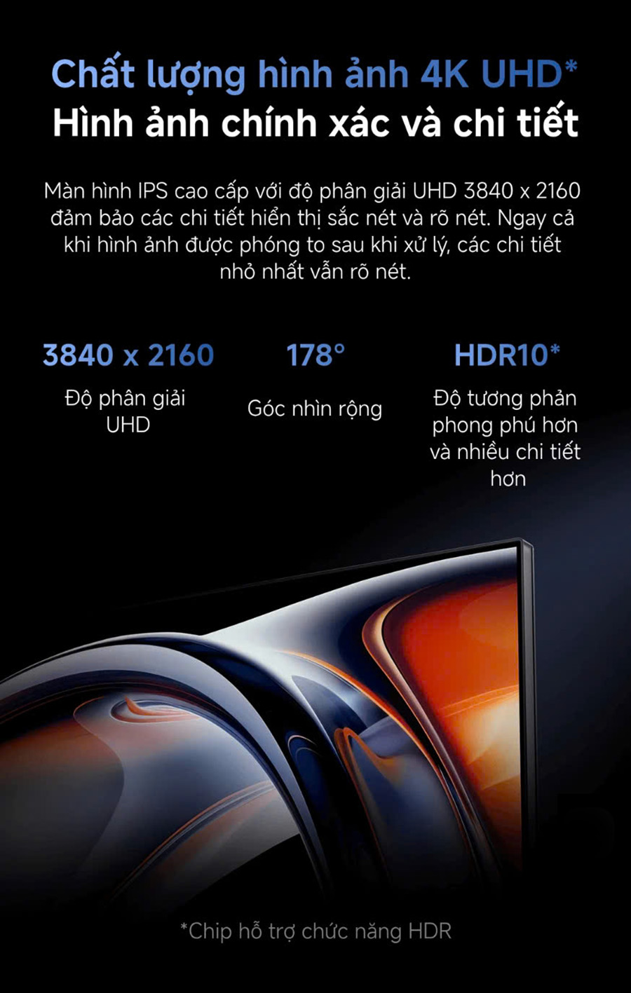 ✔️Độ phân giải 4K UHD (3840 x 2160): Cho hình ảnh sắc nét, chi tiết và sống động vượt trội.