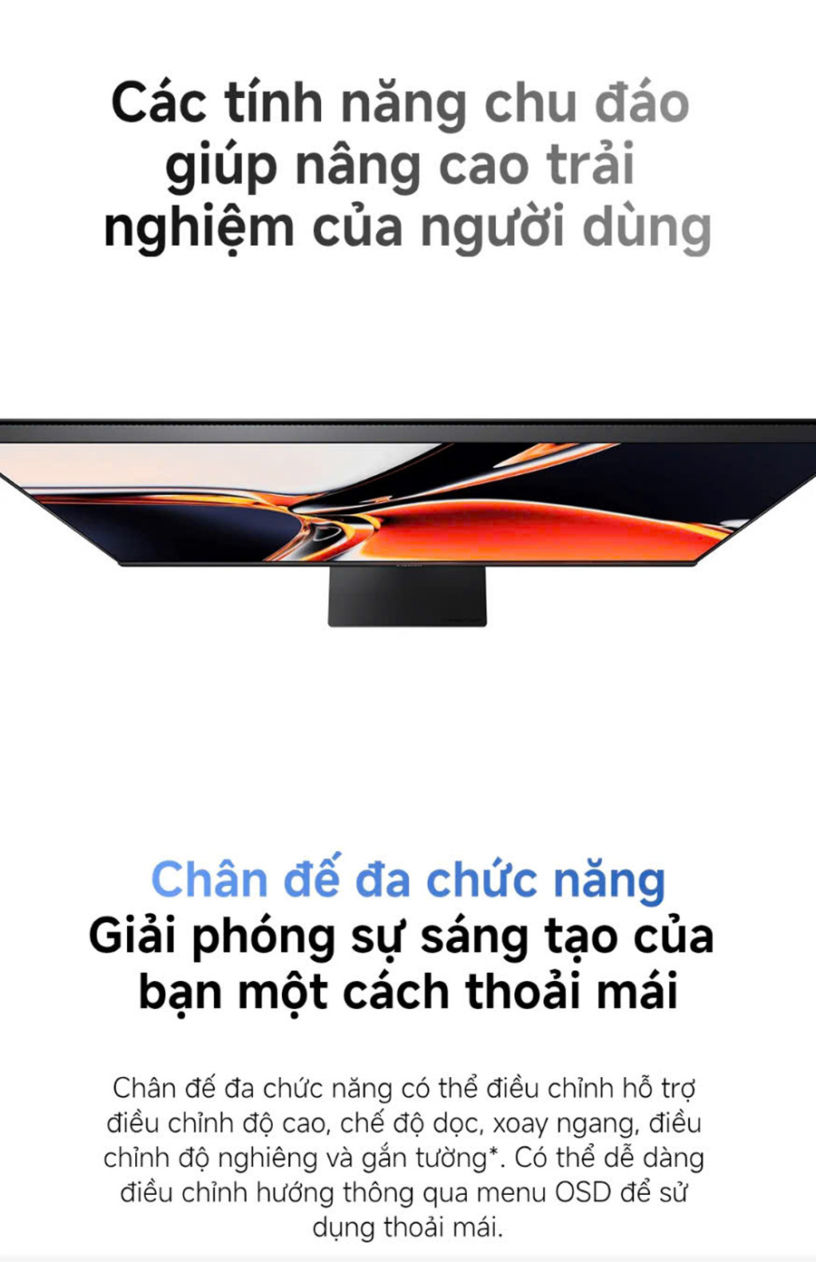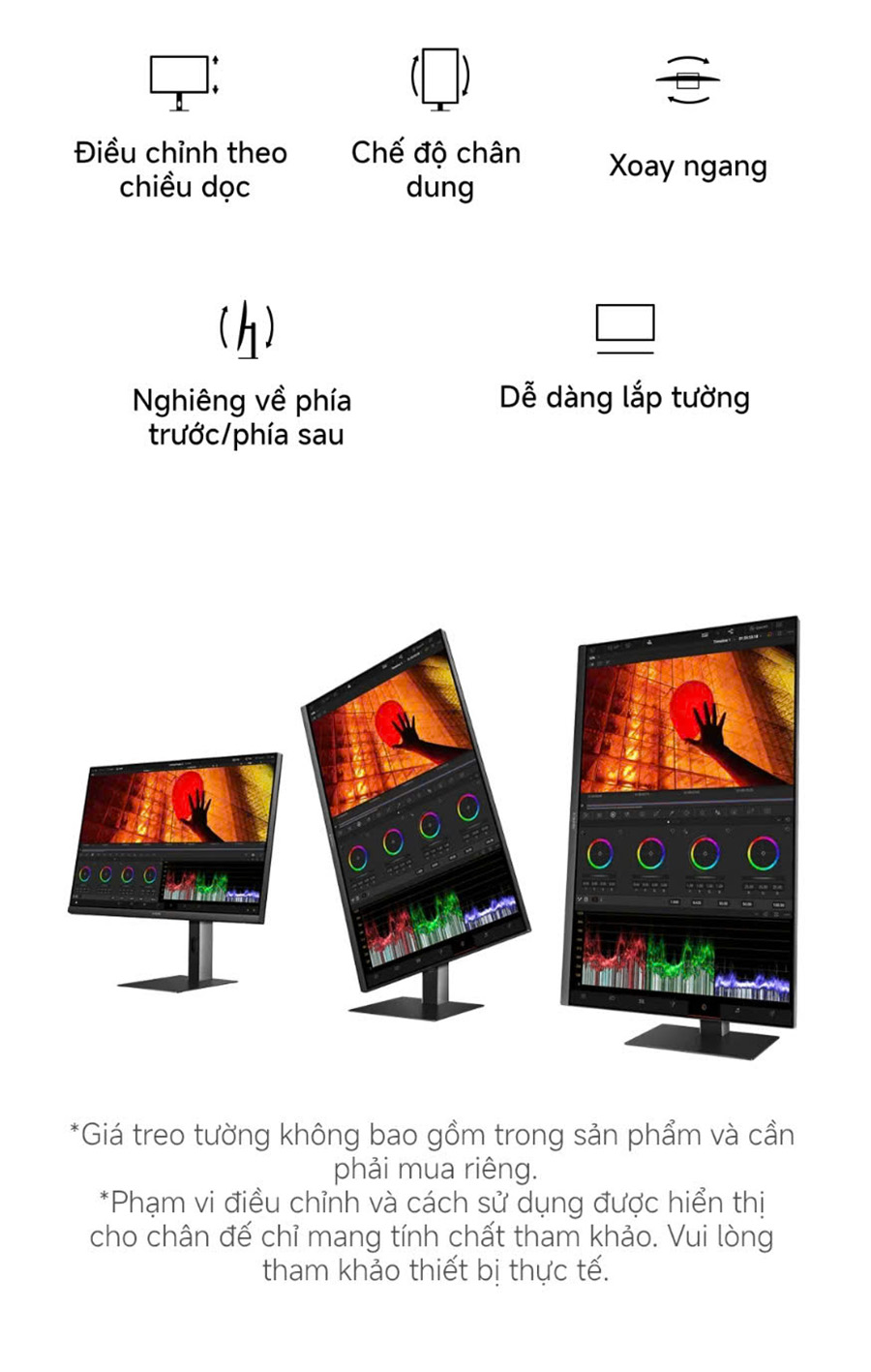 ✔️Góc nghiêng linh hoạt: Cho phép điều chỉnh góc nhìn thoải mái nhất khi sử dụng.