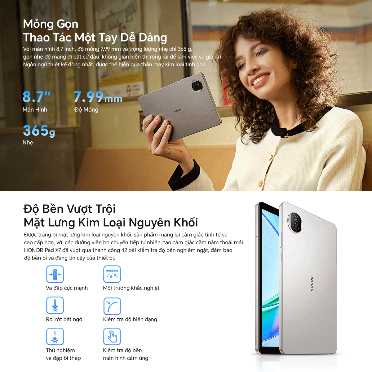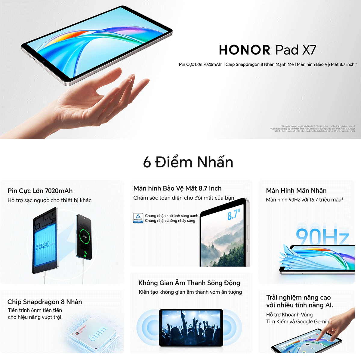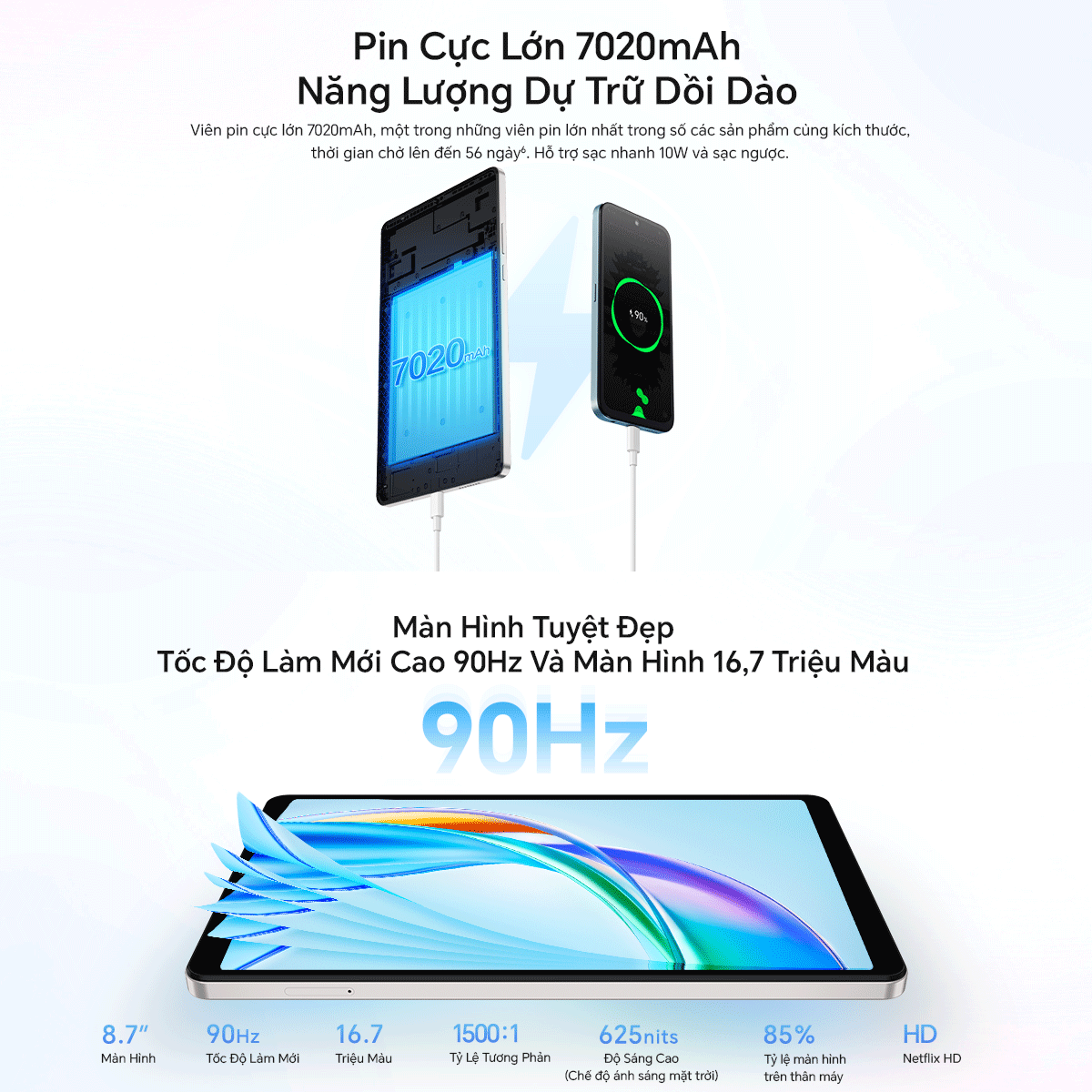 Máy Tính Bảng Honor Pad X7 4GB+64GB/ 128GB | Pin 7020mAh | Chip Snapdragon 680 8 nhân | BH 18 Tháng Hàng Chính Hãng