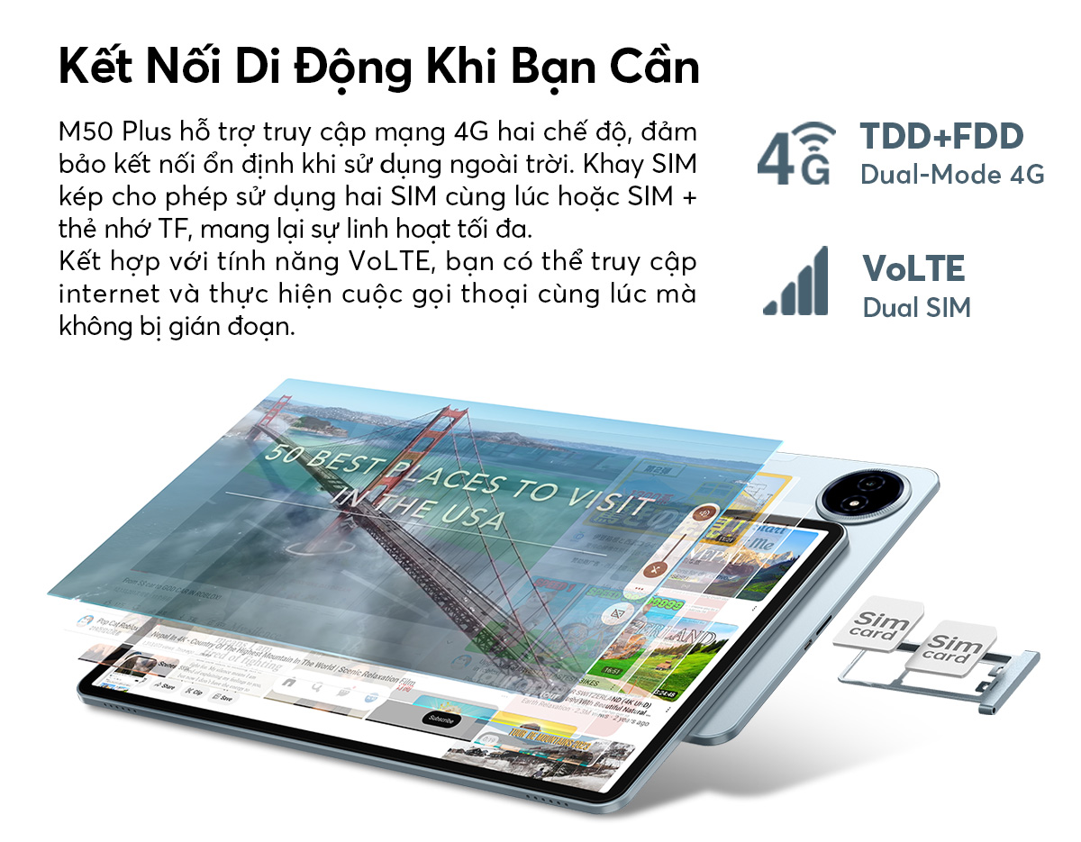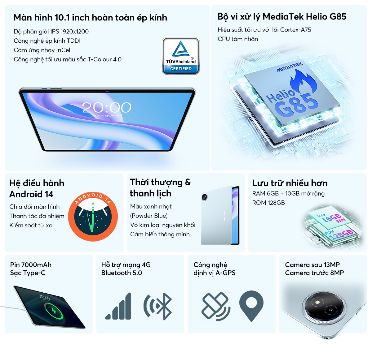 Máy Tính Bảng TECLAST M50 Plus Tablet 6GB/128GB | Màn hình 10.1inch | Chip MediaTek G85 | 7000mAh - Bảo hành 12 tháng