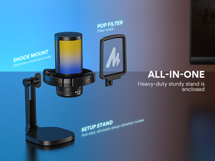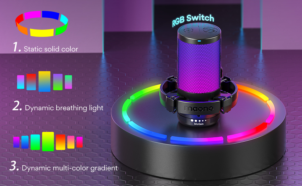 Micro thu âm MAONO DGM20 RGB USB Condenser với độ điều chỉnh lớn/chức năng thiết lập phần mềm cho PC/game/livestream