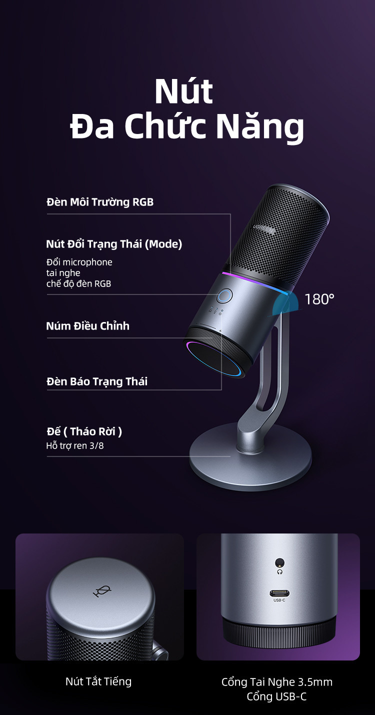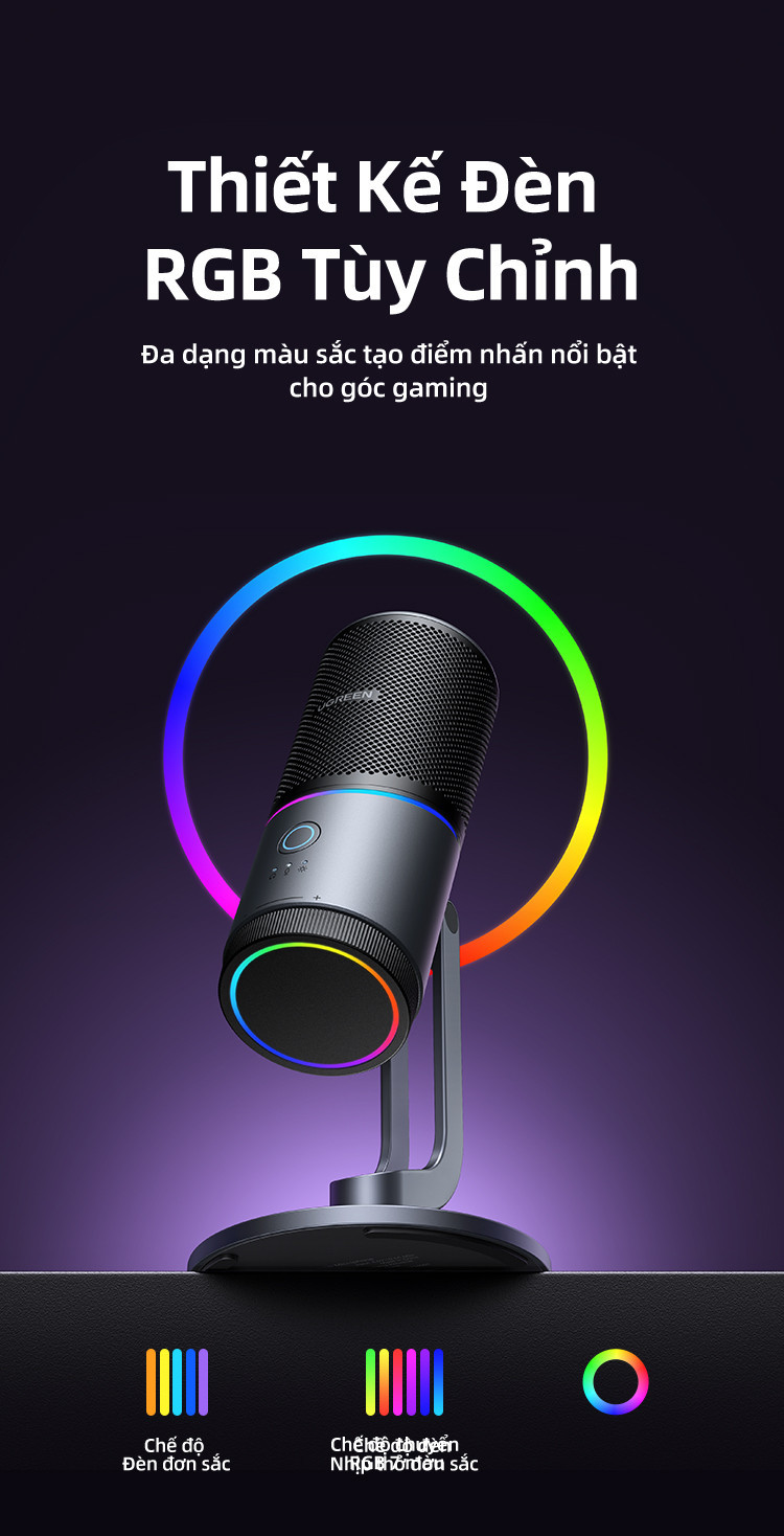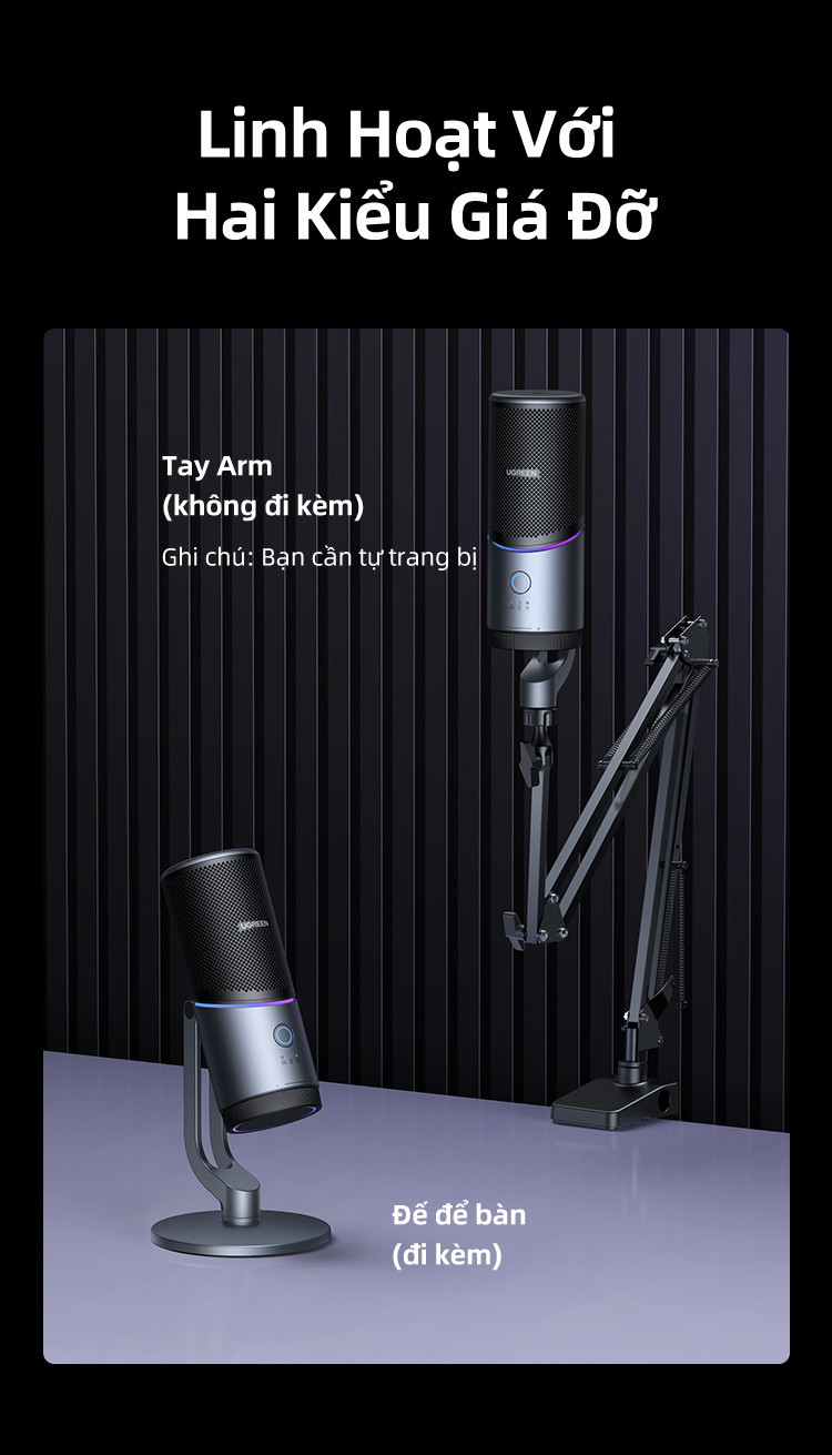 Micro USB UGREEN 7 chế độ Đèn RGB 180° Điều chỉnh theo chiều dọc Mic họa tiết phân cực Cardioid theo thời gian thực để