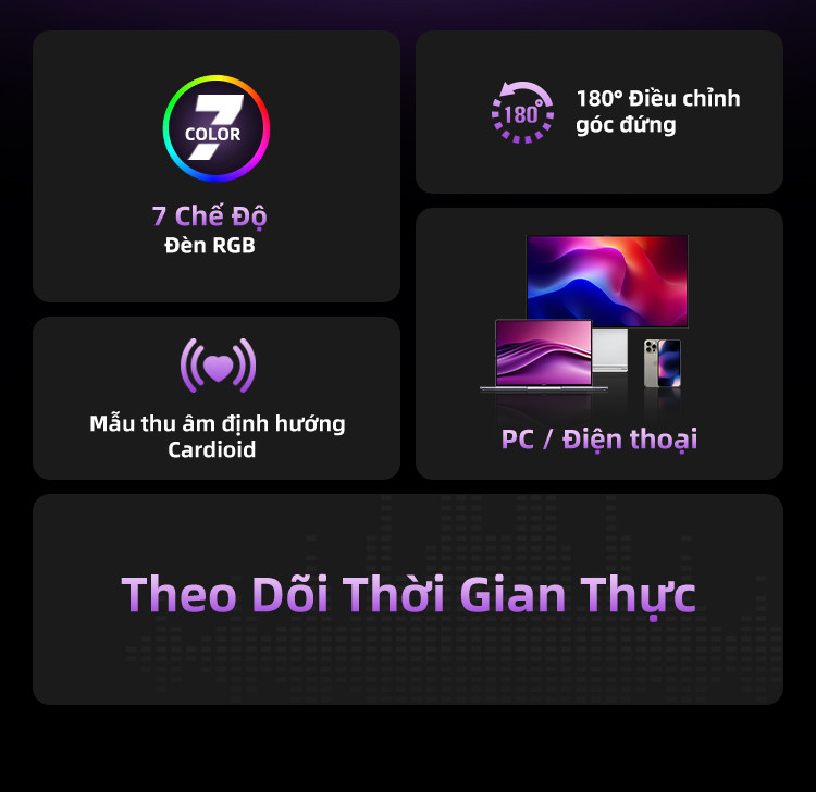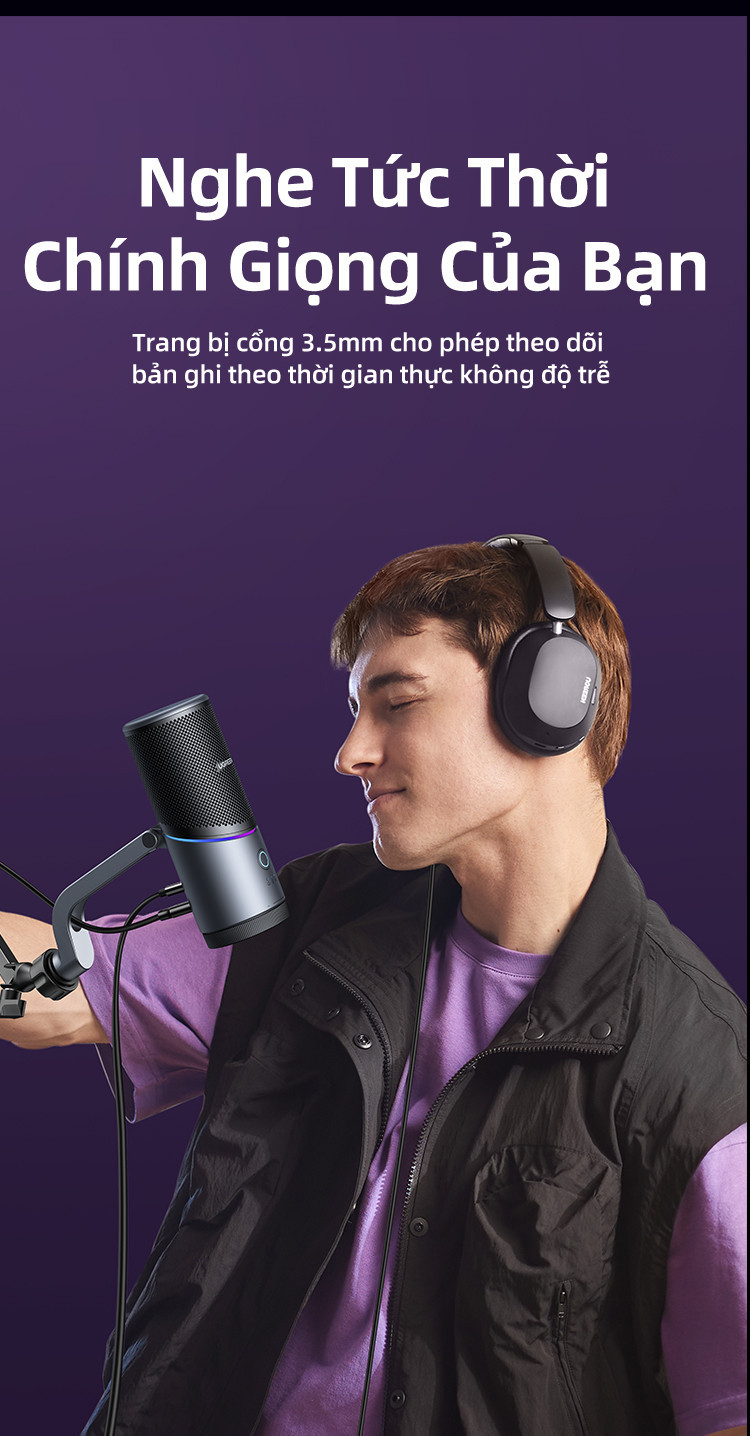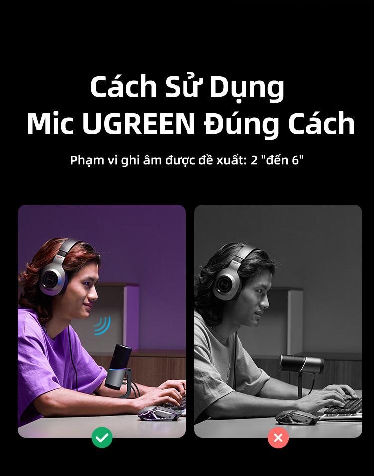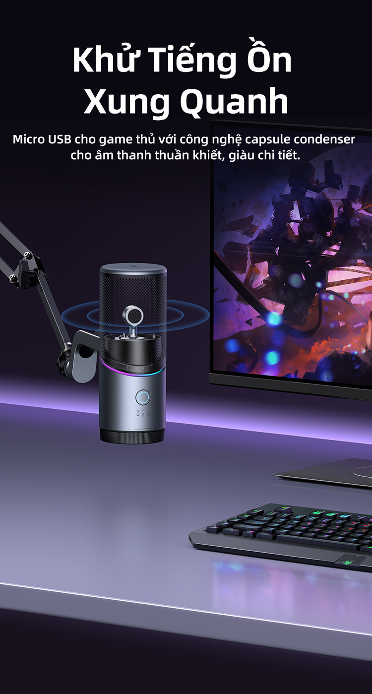 Micro USB UGREEN 7 chế độ Đèn RGB 180° Điều chỉnh theo chiều dọc Mic họa tiết phân cực Cardioid theo thời gian thực để
