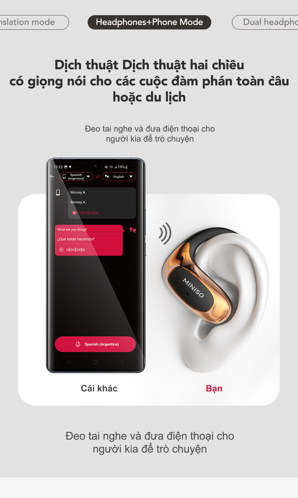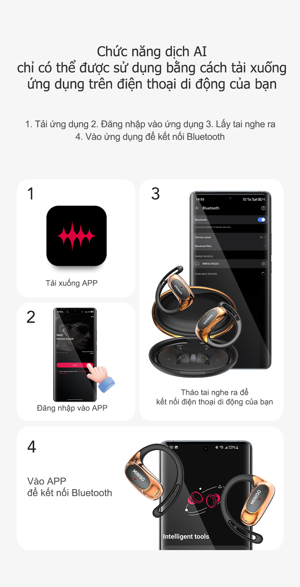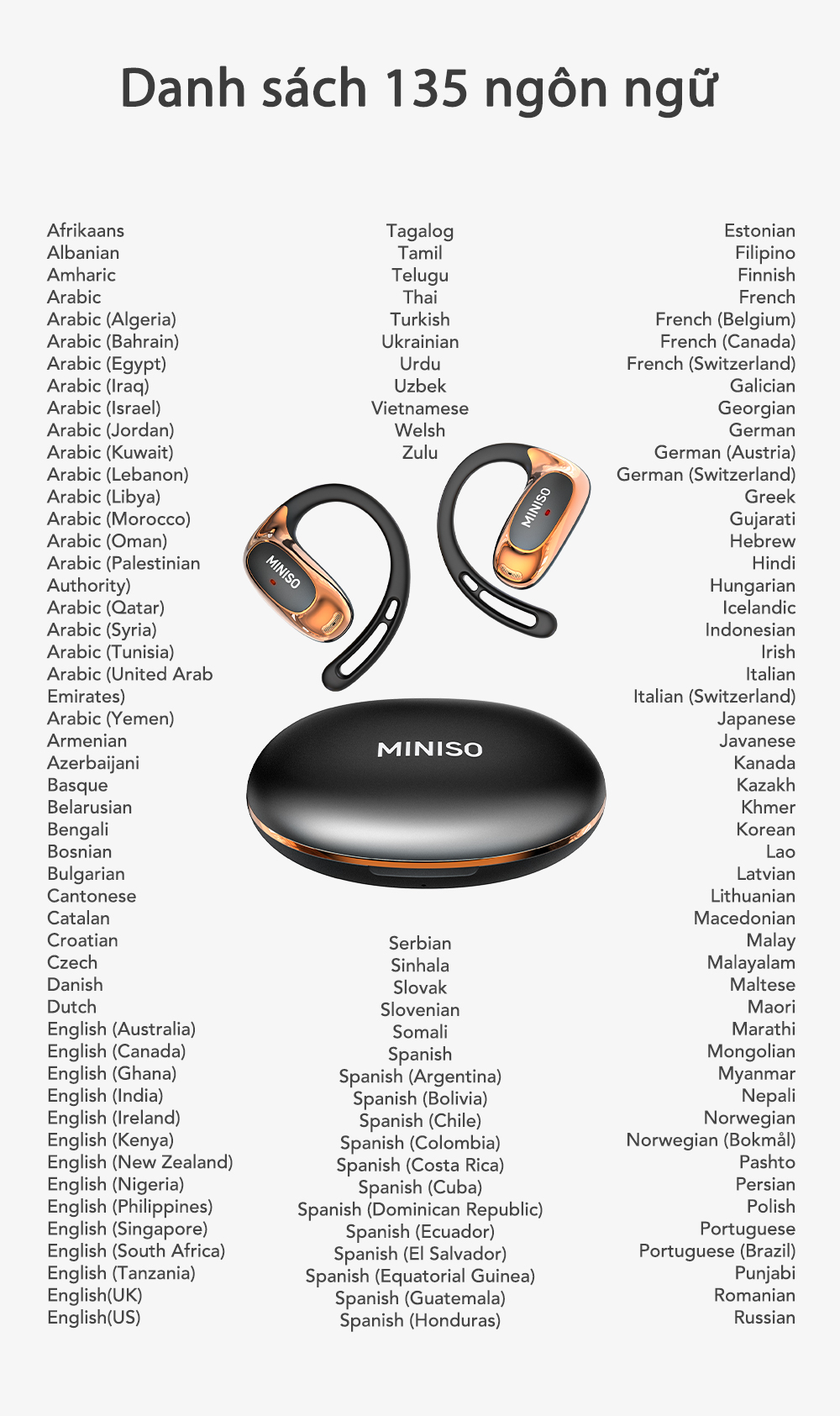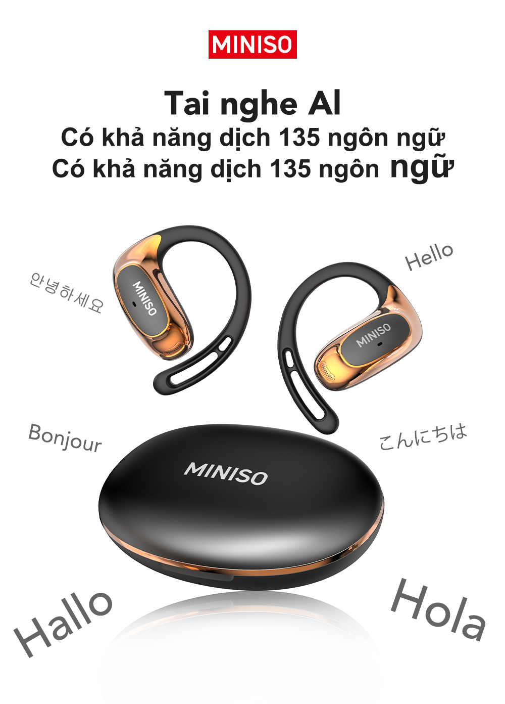 MINISO MS202 Tai Nghe Phiên Dịch AI Phiên dịch thời gian thực AI Giảm tiếng ồn Tai nghe Bluetooth Bluetooth 6.0 Tai nghe không dây Âm thanh nổi HiFi ASMR Có micrô Tai nghe dẫn truyền qua xương