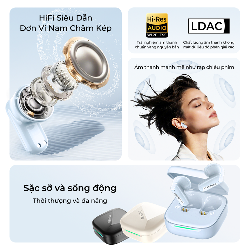 Tên sản phẩm: [Mới 2026] MINISO MS119 Tai nghe dịch thuật AI HIFI Tai nghe Bluetooth Hai micrô Giảm tiếng ồn cuộc gọi tai nghe không dây Chống nước IPX5