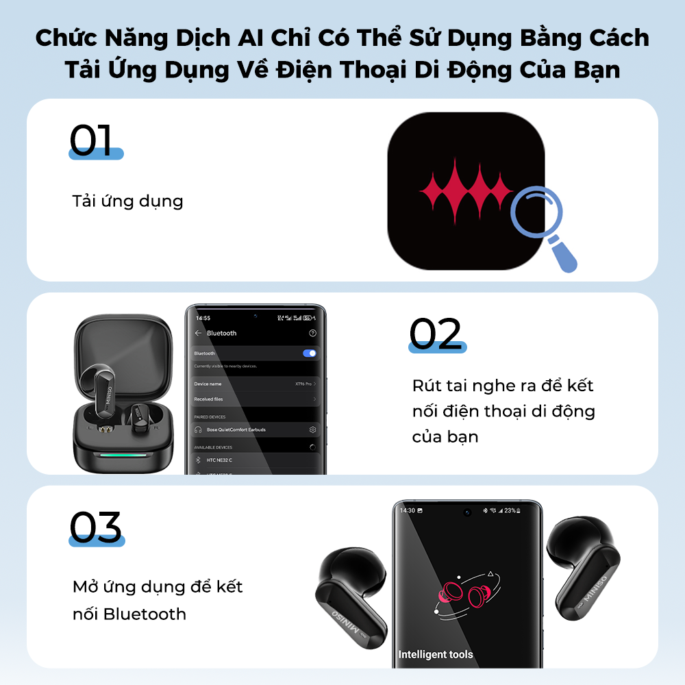 1. Lấy tai nghe ra và kết nối tai nghe qua Bluetooth;