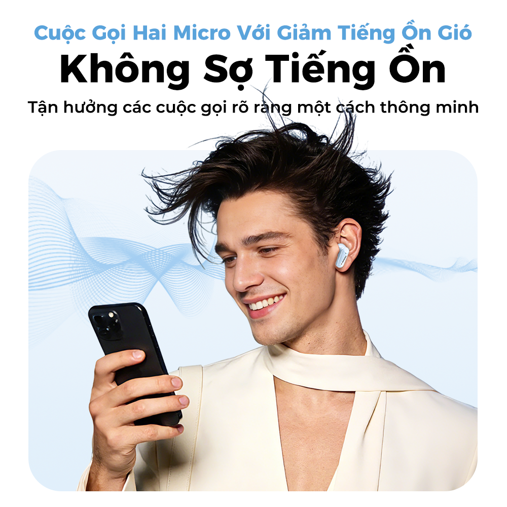 Gọi điện hai micrô với tính năng khử tiếng ồn gió, không lo bị nhiễu, tận hưởng cuộc gọi rõ ràng một cách thông minh. Tai nghe sử dụng thuật toán khử tiếng ồn hai kênh, đạt khả năng chống tiếng ồn gió trong khi gọi lên đến 4m/s*. Đồng thời hỗ trợ công nghệ khử tiếng ồn hai micrô, giảm tiếng ồn xung quanh hiệu quả, đảm bảo cuộc gọi rõ ràng dù ở trong nhà hay ngoài trời.