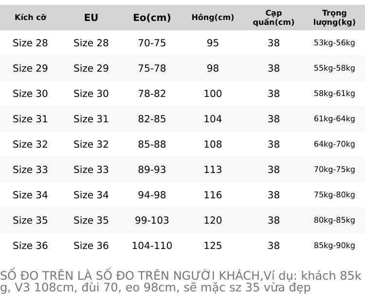 BẢNG SIZE