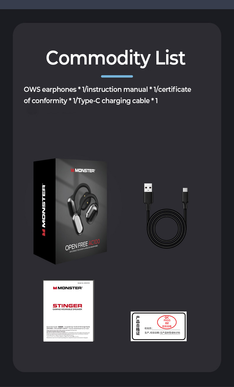 Monster Open Ear AC100/MH22156 Tai Nghe Bluetooth 5.3 Không Dây thể thao điều khiển cảm ứng hifi không thấm nước với micrô