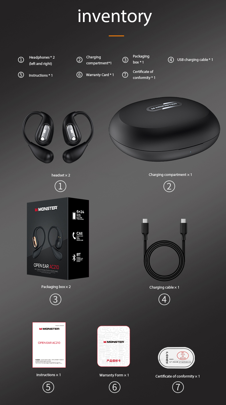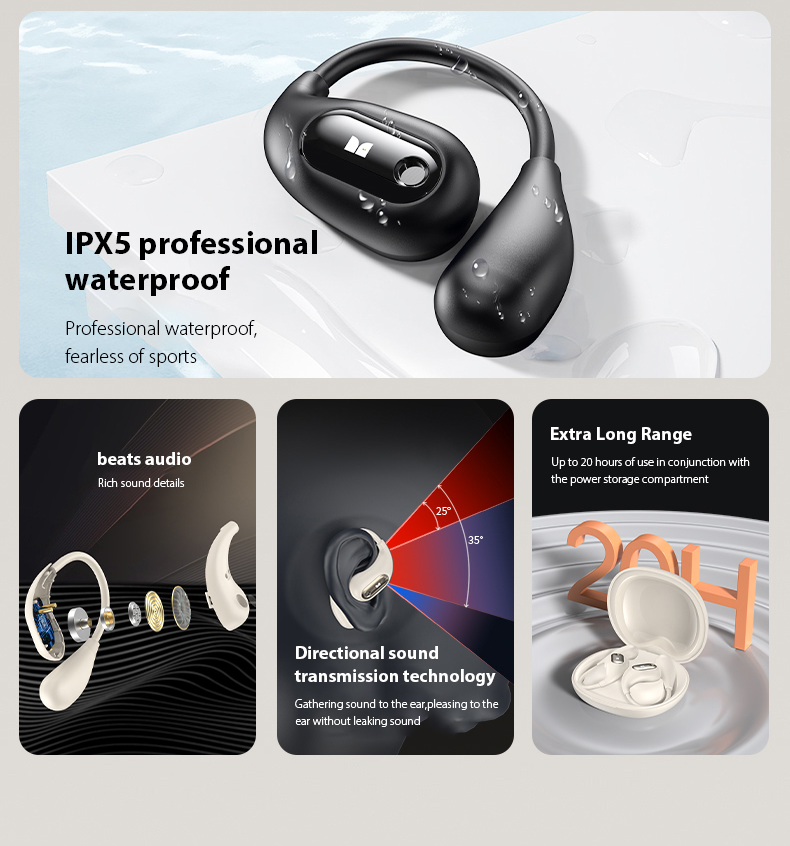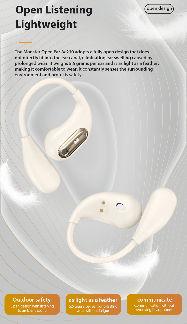 Monster Open Ear AC210 Bluetooth 5.4 Tai Nghe Không Dây OWS Mở Hoàn Toàn Earhook IPX5 Chống Nước