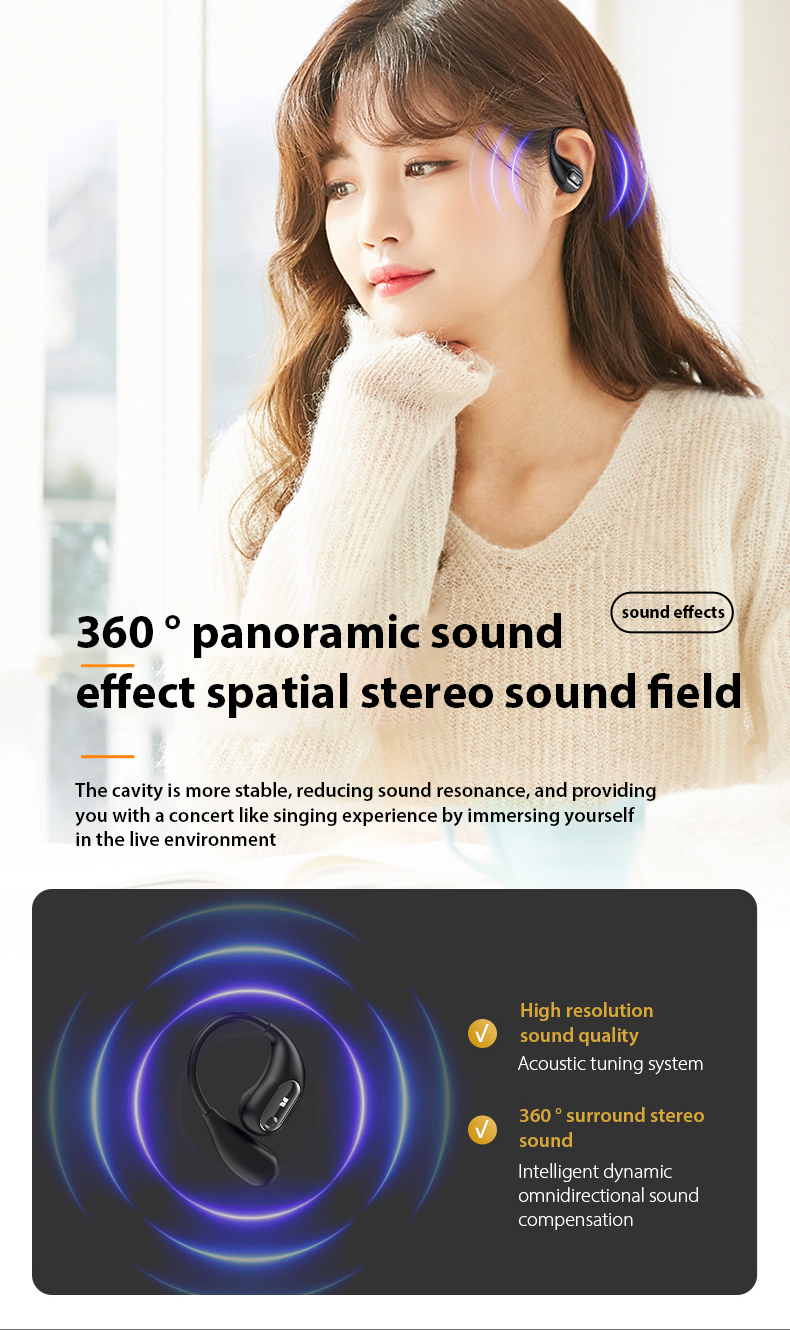 [Thiết kế mở hoàn toàn] Thoải mái hơn khi không nhét vào tai, OWS không đau, đeo thoải mái và không gây gánh nặng cho tai