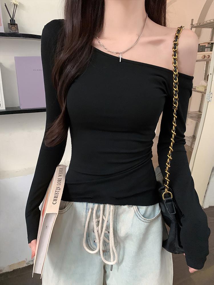 MosesQueen fashion long-sleeved solid color shirt, 2025 spring Vietnam store new casual design large round neck, women's simple and easy to match thin shirt, sexy slim women's tops #62269-62318
