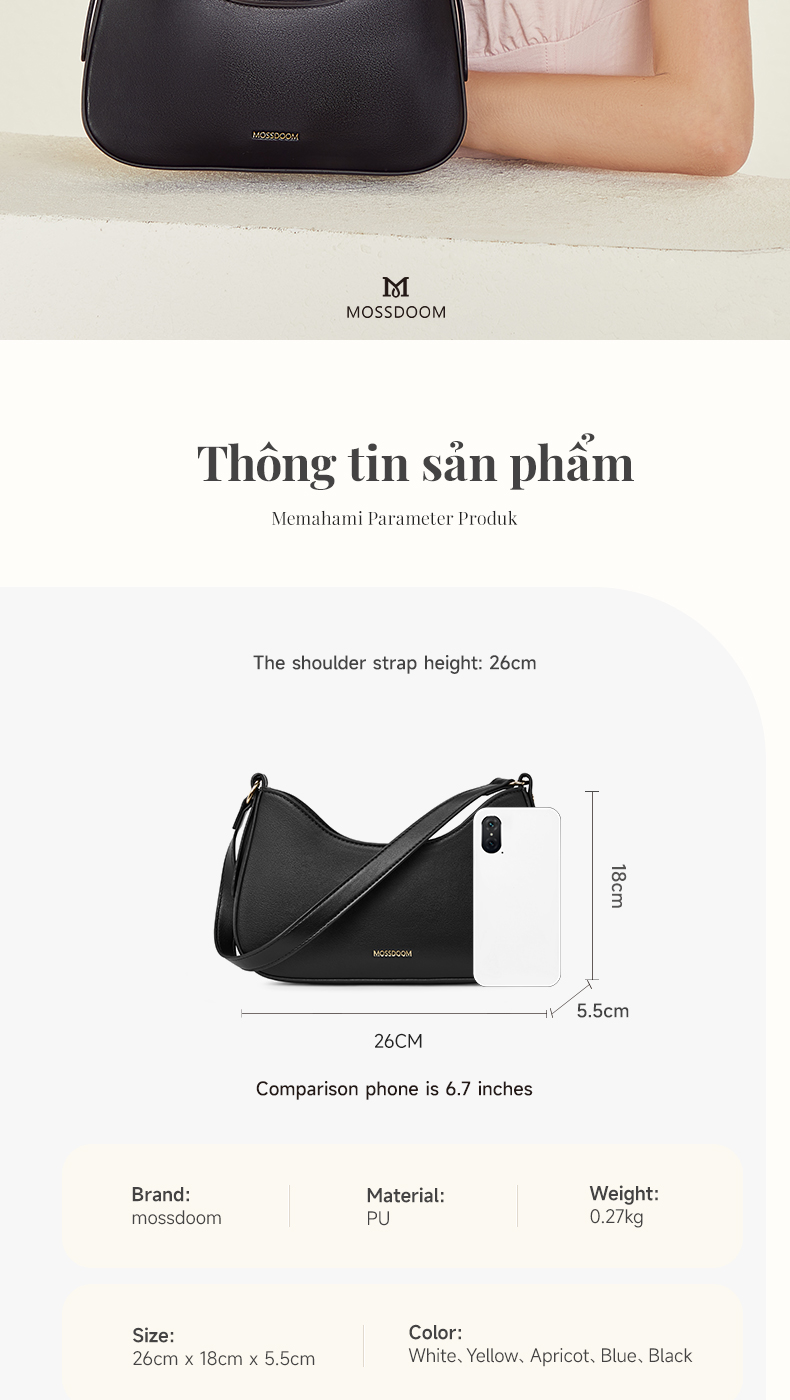 MOSSDOOM Darby Bag Túi xách nữ thiết kế đơn giản dễ phối đồ thời trang