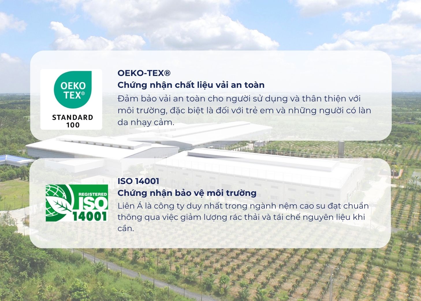 - Sản phẩm đạt các chứng nhận an toÀNquốc tế: ISO 14001, Oeko-Tex® Standard 100.