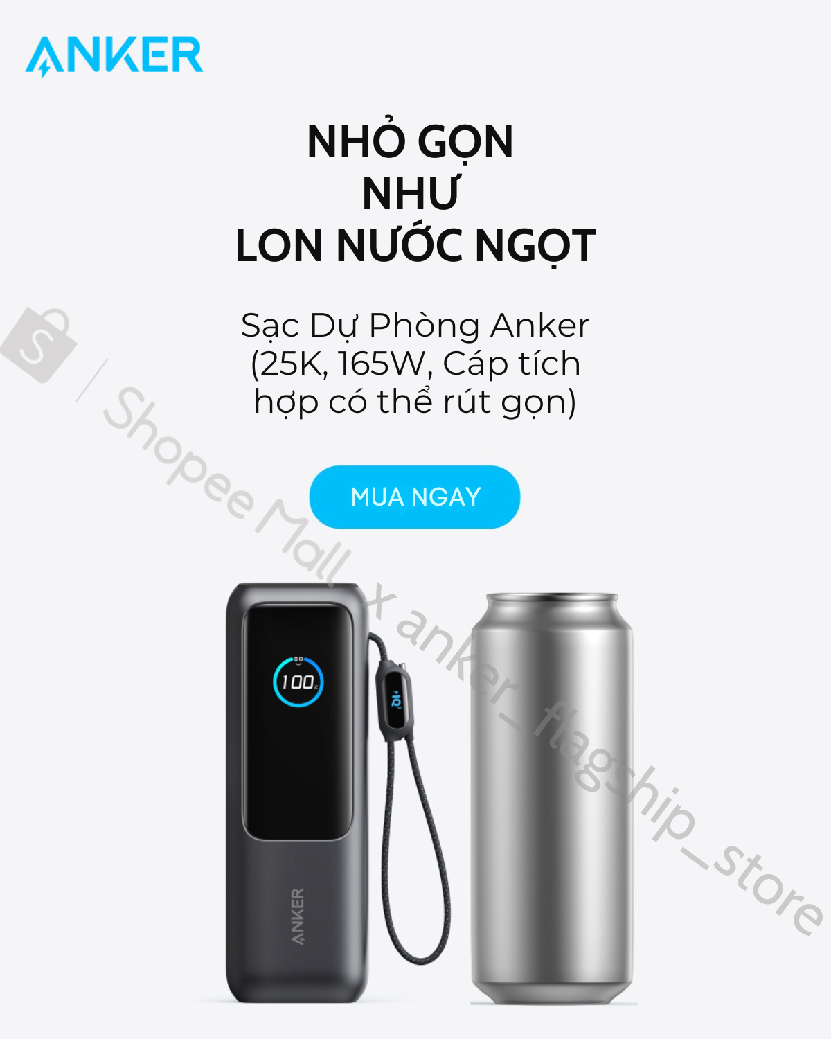 Pin dự phòng Anker Zolo Power Bank 25000mAh công suất 165W tích hợp cáp USB-C có thể thu gọn - A1695