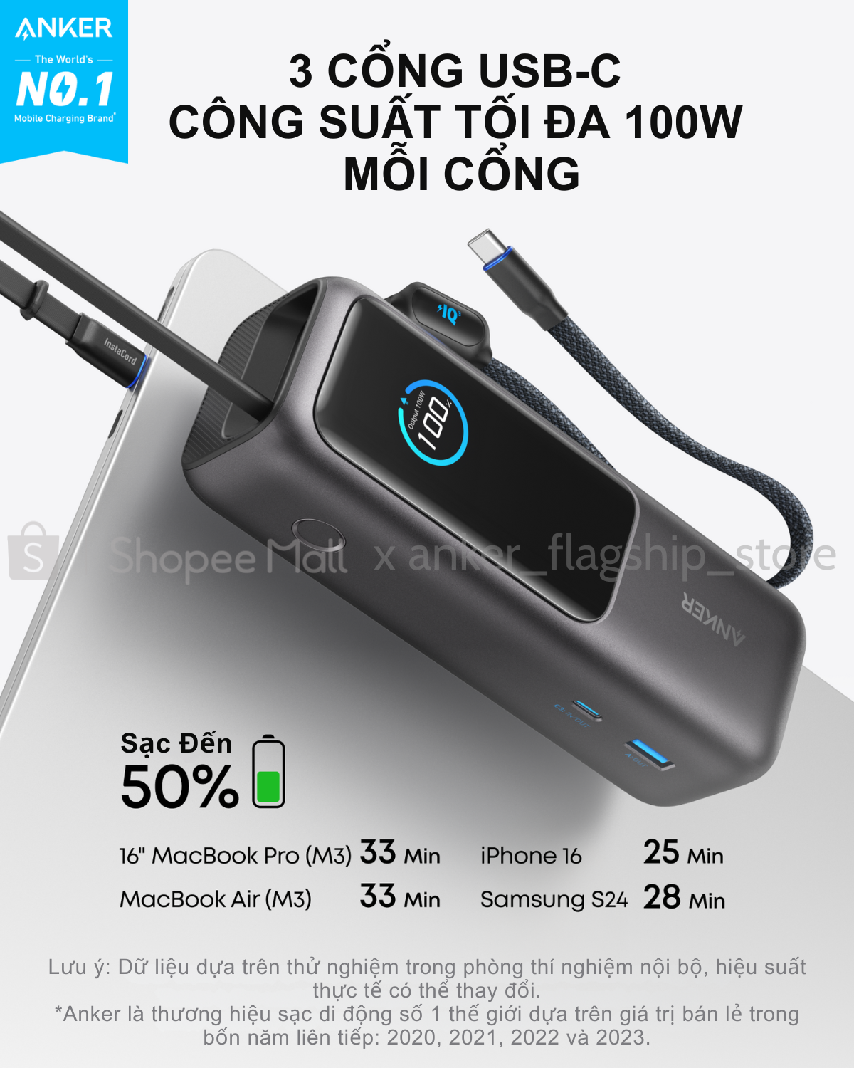 - Anker Zolo: Sạc đầy 100% trong 120 phút.